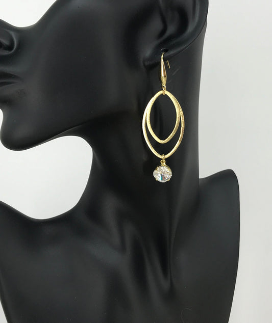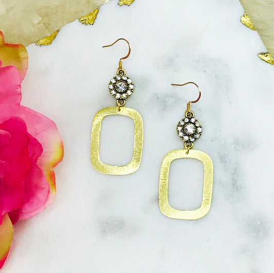 Brushed Gold & Pave Pendant Earrings - E19-4353