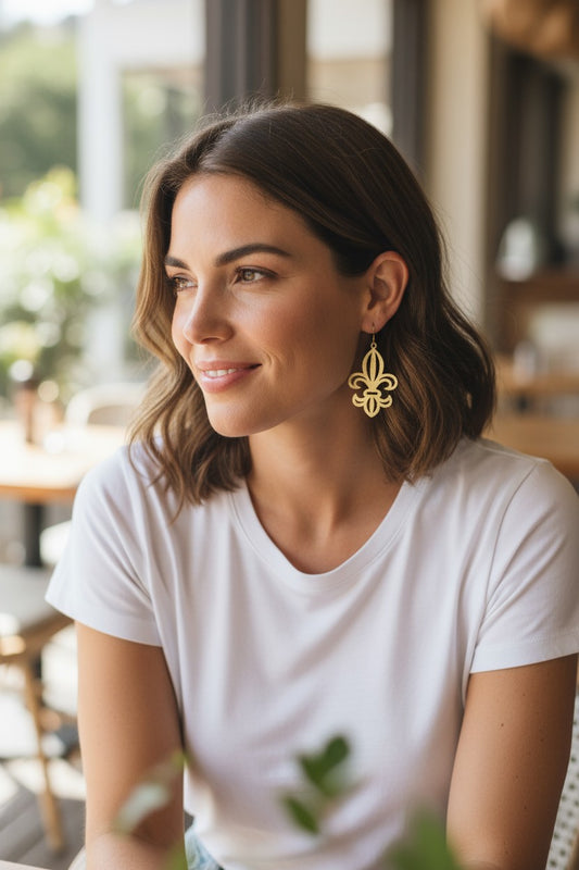 Brushed Gold Fleur De Lis Pendant Earrings - E19-4684