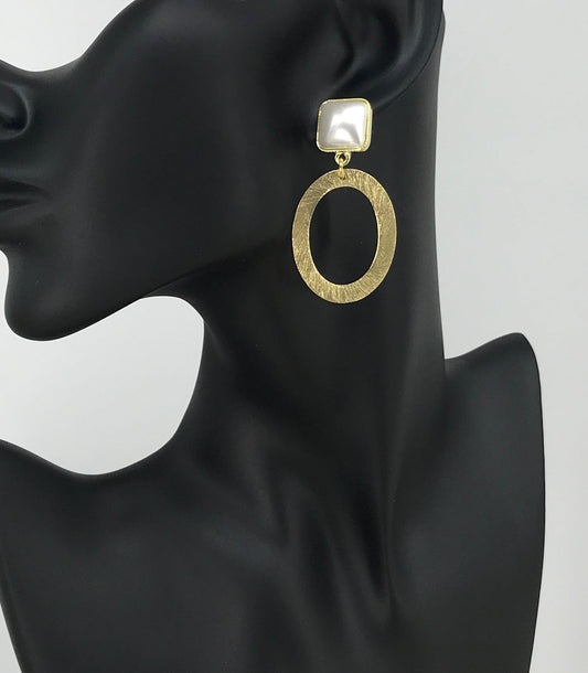 Cushion Crystal & Brushed Gold Rectangle Drop Earrings