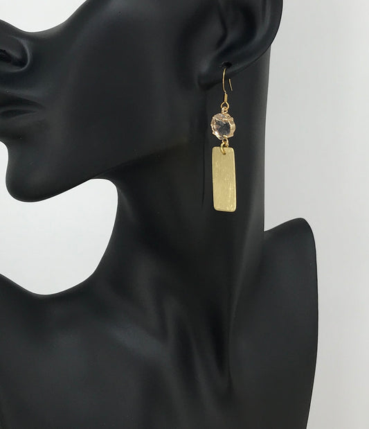 Cushion Crystal & Brushed Gold Bar Drop Earrings