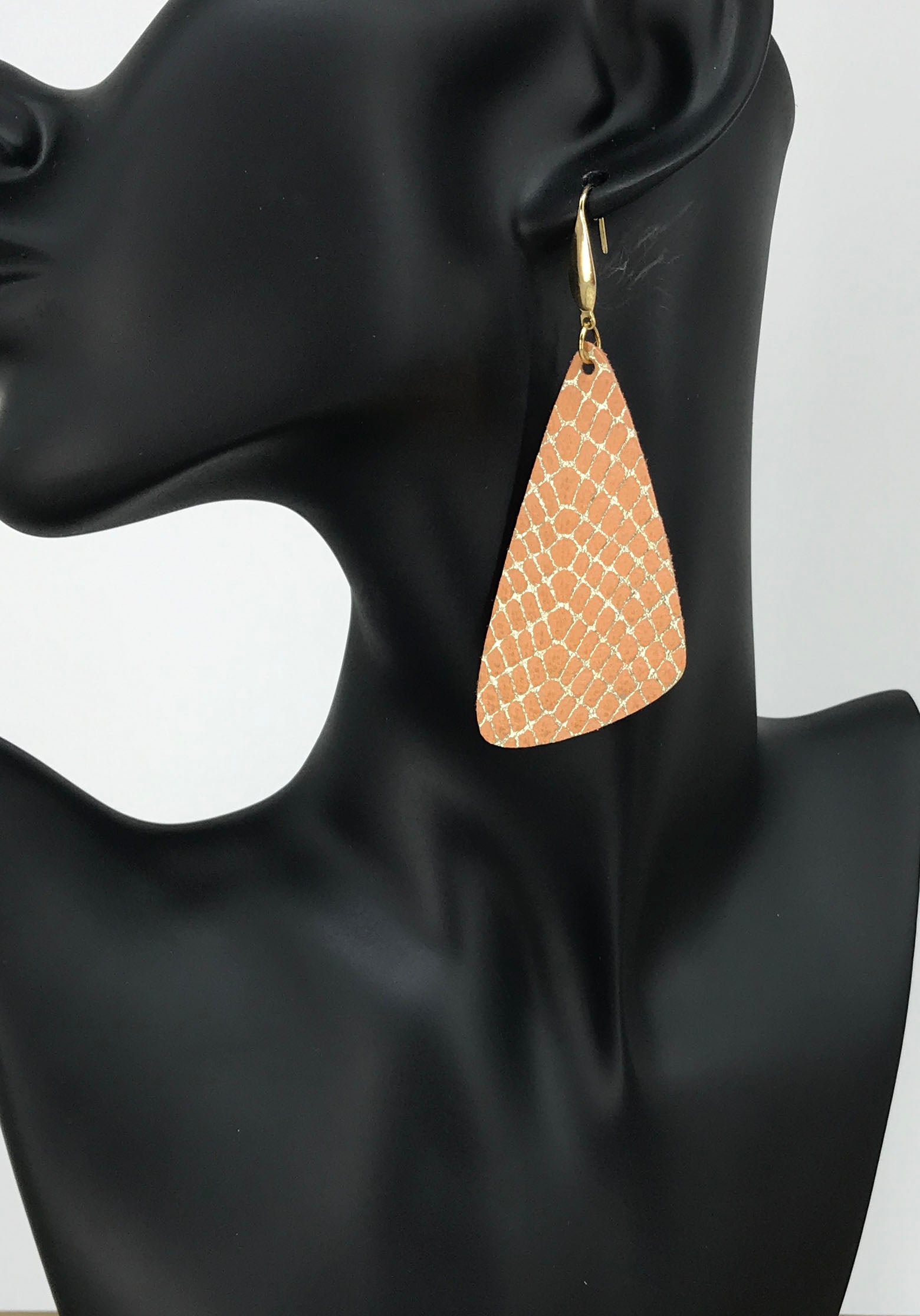 Apricot Gold Snake Leather Earrings with Gold Tone Stainless Steel Findings and Ear Wires.