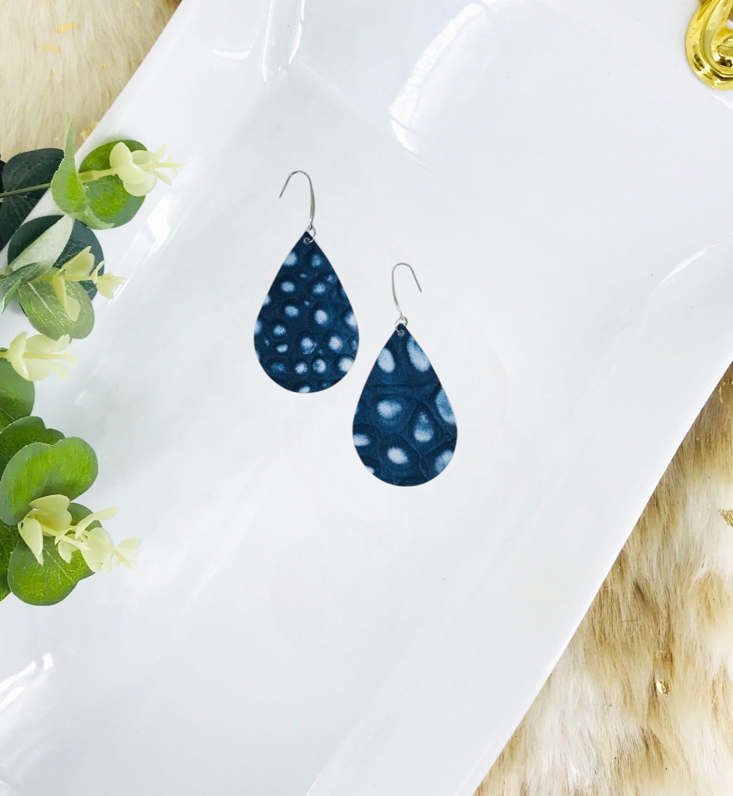 Genuine Blue Alligator Leather Earrings with Stainless Steel Findings and Ear Wires.