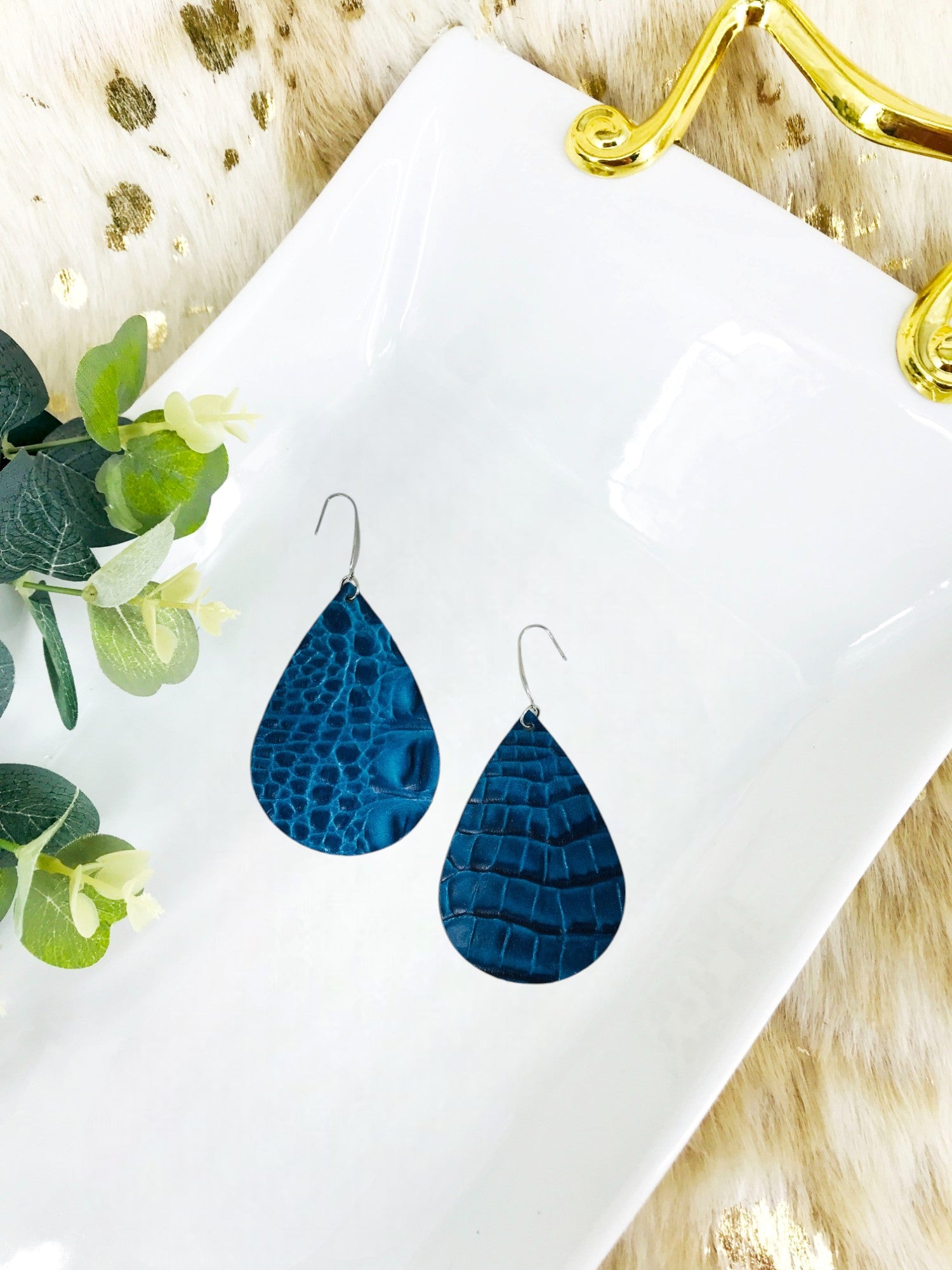 Genuine Blue Alligator Leather Earrings with Stainless Steel Findings and Ear Wires.
