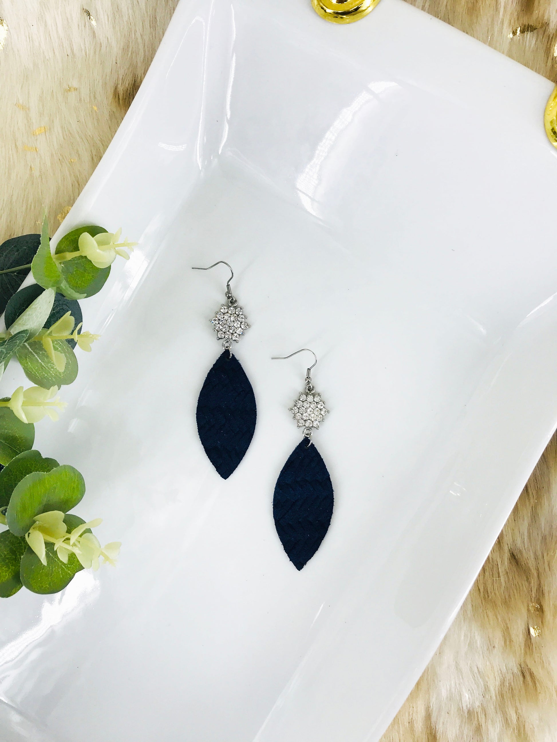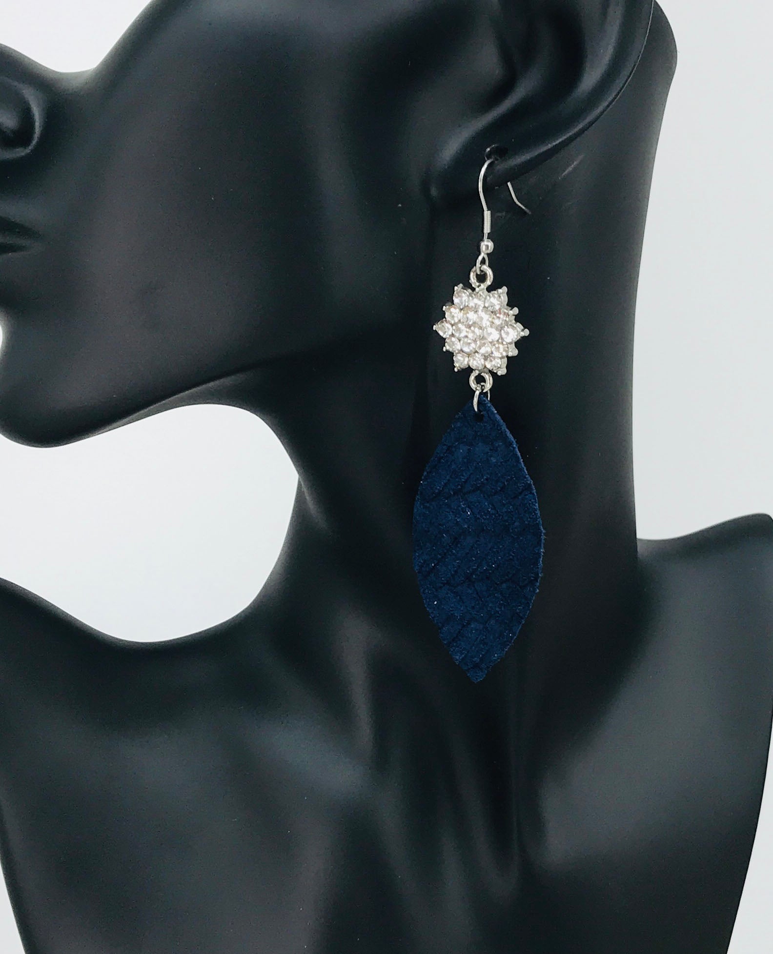 Blue Italian Leather and Rhinestone Charm Earrings - E19-193