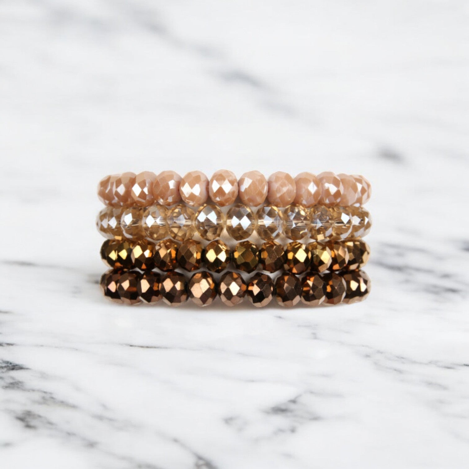Brown Stack Bracelet Set Consisting of 4 Separate Glass Bead Stretchy Bracelets.