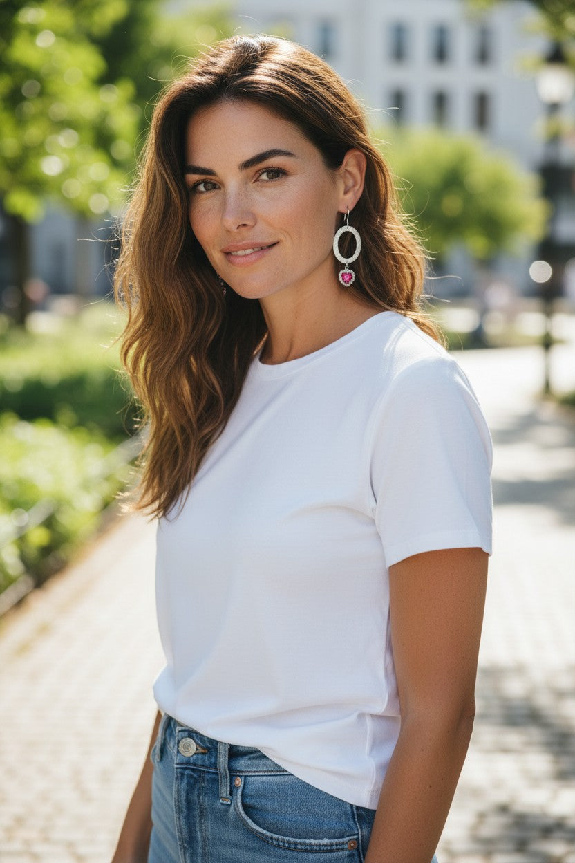 A little shimmer, a lot of polish. These brushed silver oval drops are finished with a sparkling rhinestone pendant for the perfect “dress it up or keep it casual” vibe. Made with stainless steel hypoallergenic fish hook ear wires—lightweight and comfy for all-day wear.