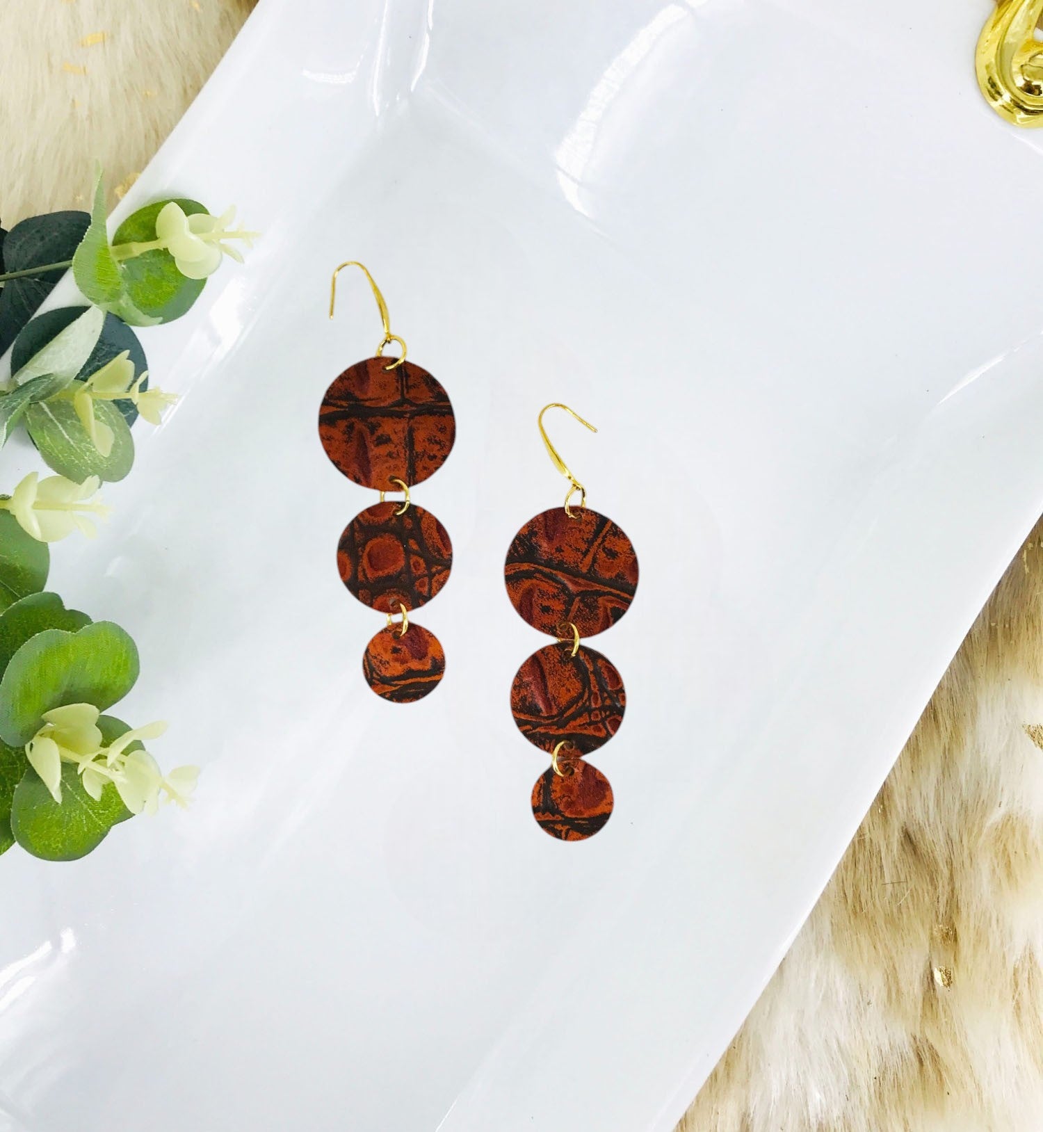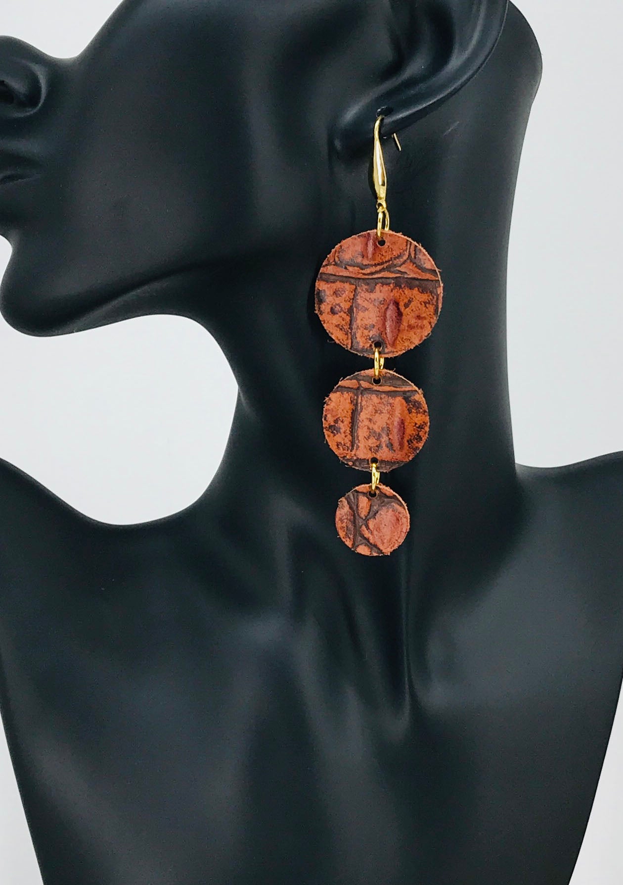 Burnt Orange Embossed Genuine Leather Earrings - E19-1428