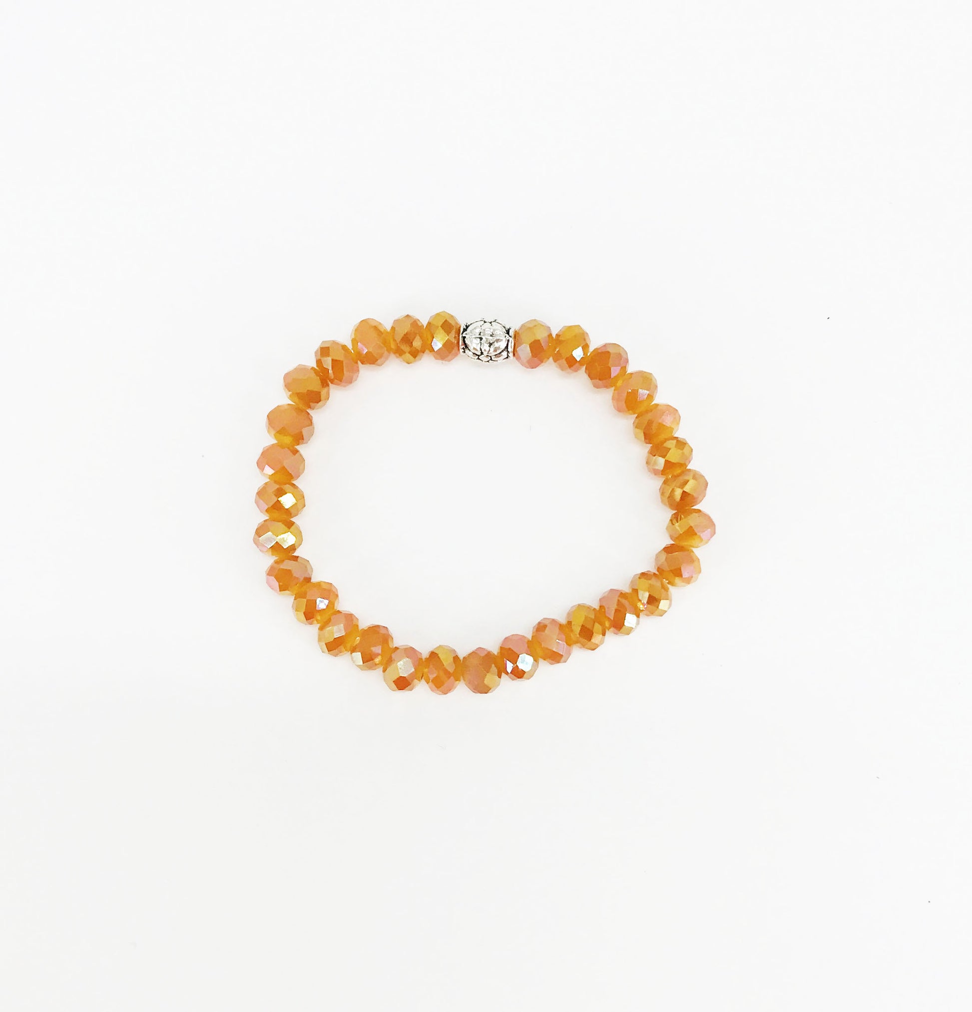 8" Burnt Orange Glass Bead Stretchy Bracelet made of 8mm Glass Beads and designed locally and hand stung on a generous length of thick stretch cord.