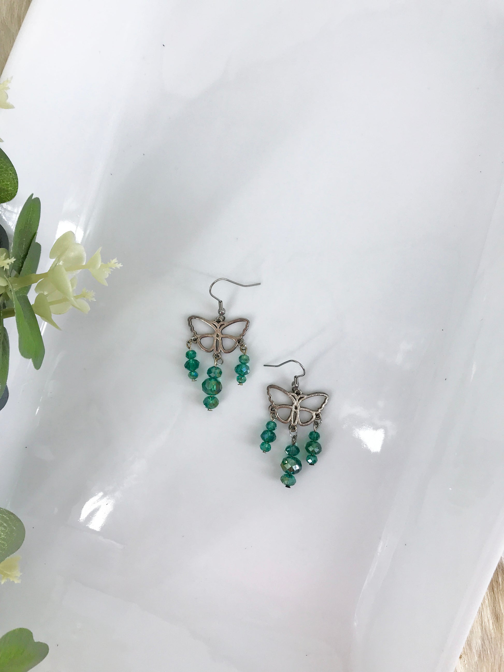 Butterfly Glass Bead Chandalier Earrings - E19-326