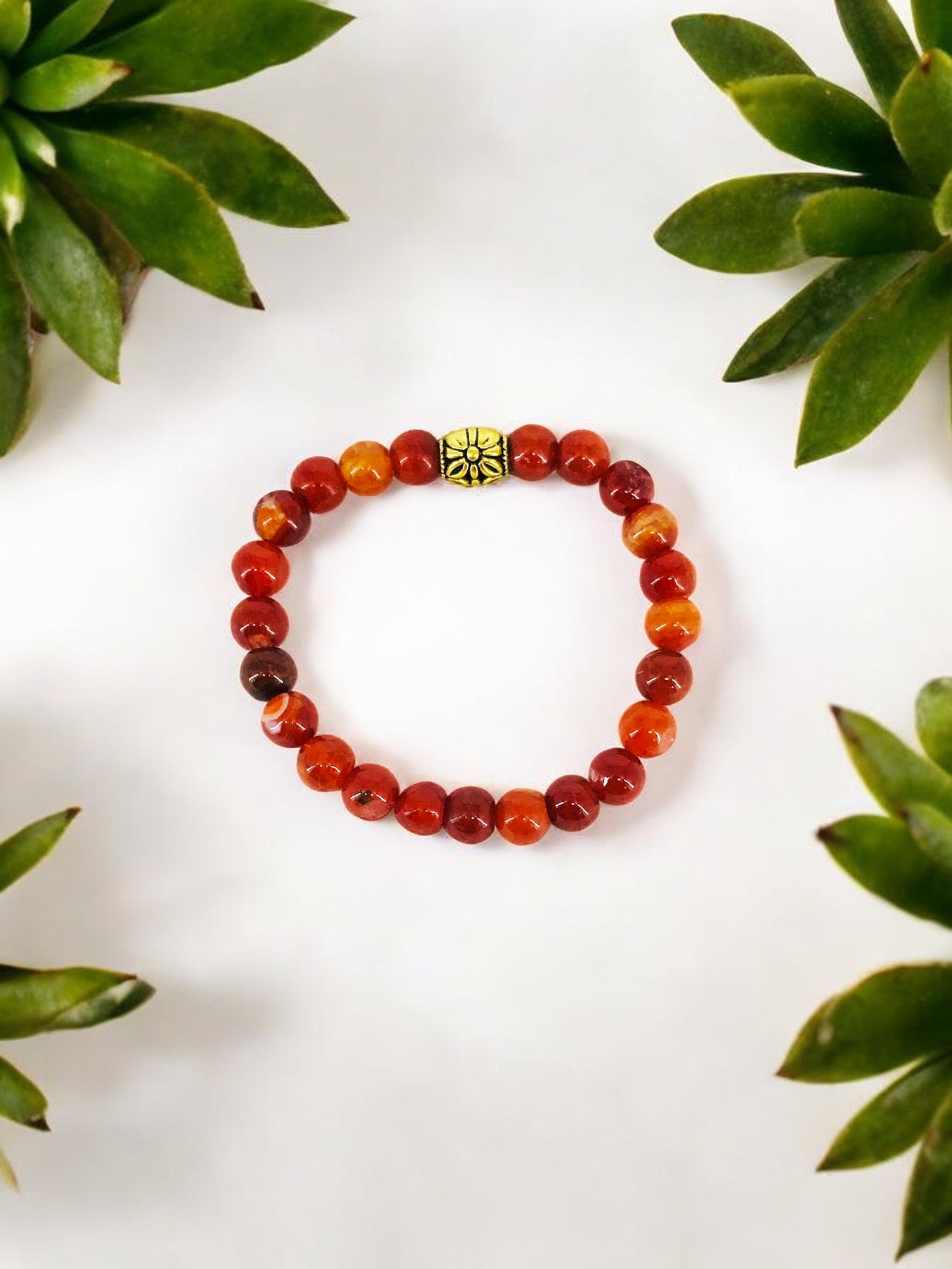 8" Carnelian Gemstone Stretchy Bracelet Designed locally and hand stung on a generous length of thick stretch cord.