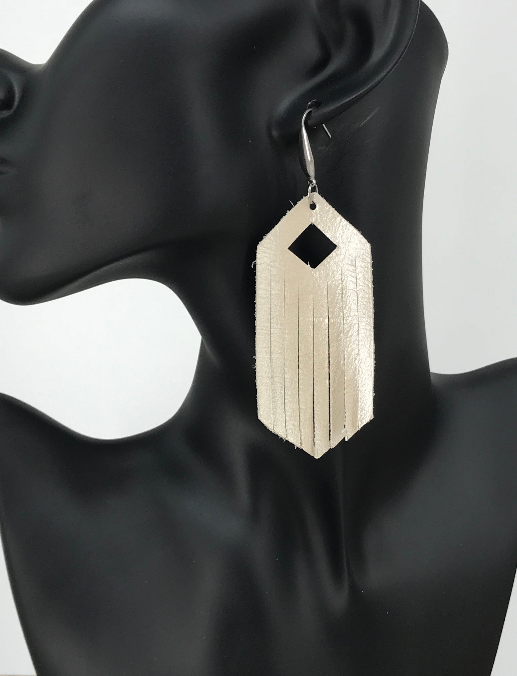 Champagne Soft and Shiny Pearlized Smooth Leather with Stainless Steel Findings and Ear Wires.