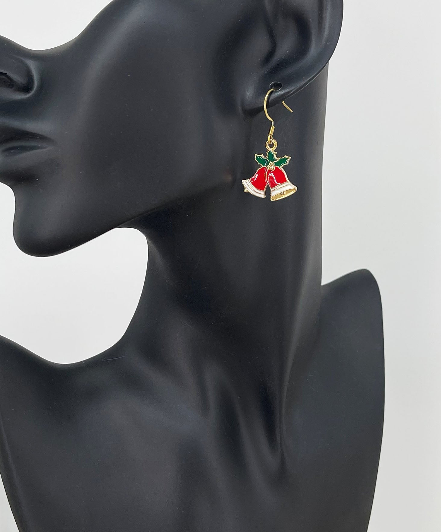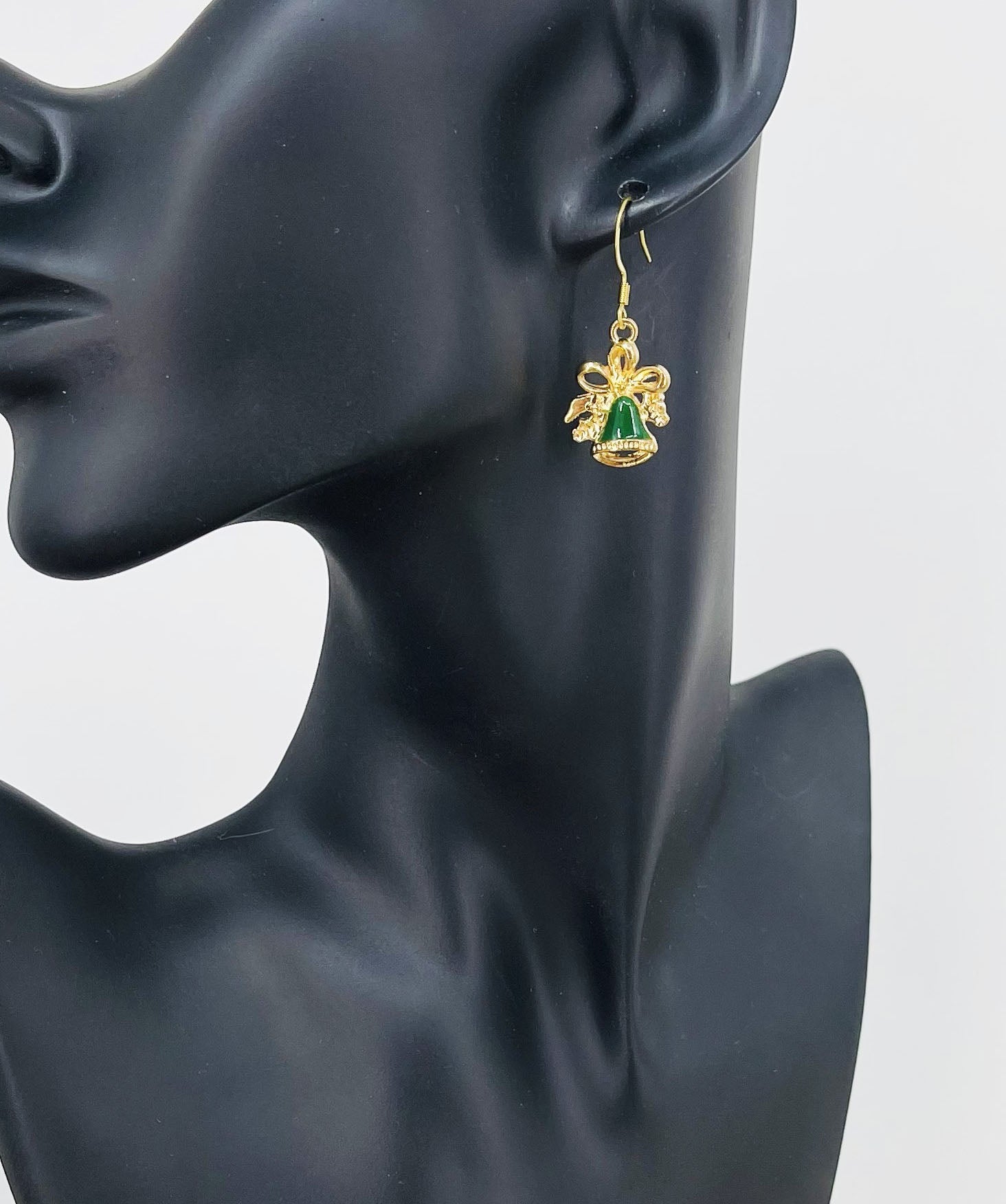 Ring in the season with our Christmas Bell Earrings. Featuring festive bell designs in red, green, and gold with delicate bow and holly details, each pair is finished with gold-tone stainless steel fish hook ear wires. Elegant and cheerful, they add the perfect holiday sparkle to any look.