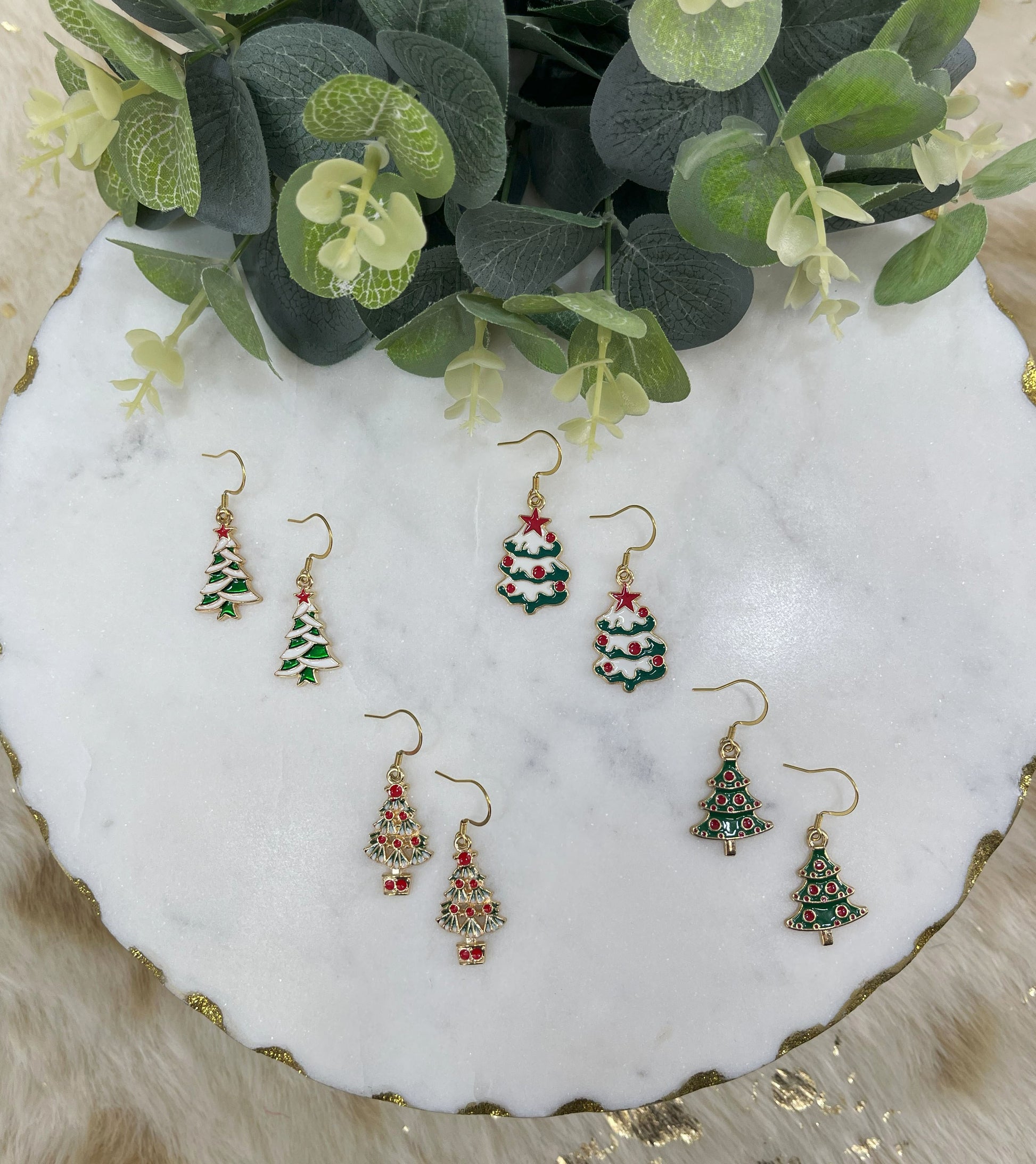 Our Christmas Tree Earrings bring festive sparkle to the season. Featuring charming tree designs adorned with stars, ornaments, and holiday colors, each pair is finished with gold-tone stainless steel fish hook ear wires. Perfect for holiday gatherings, gifting, or adding a joyful touch to your winter style.