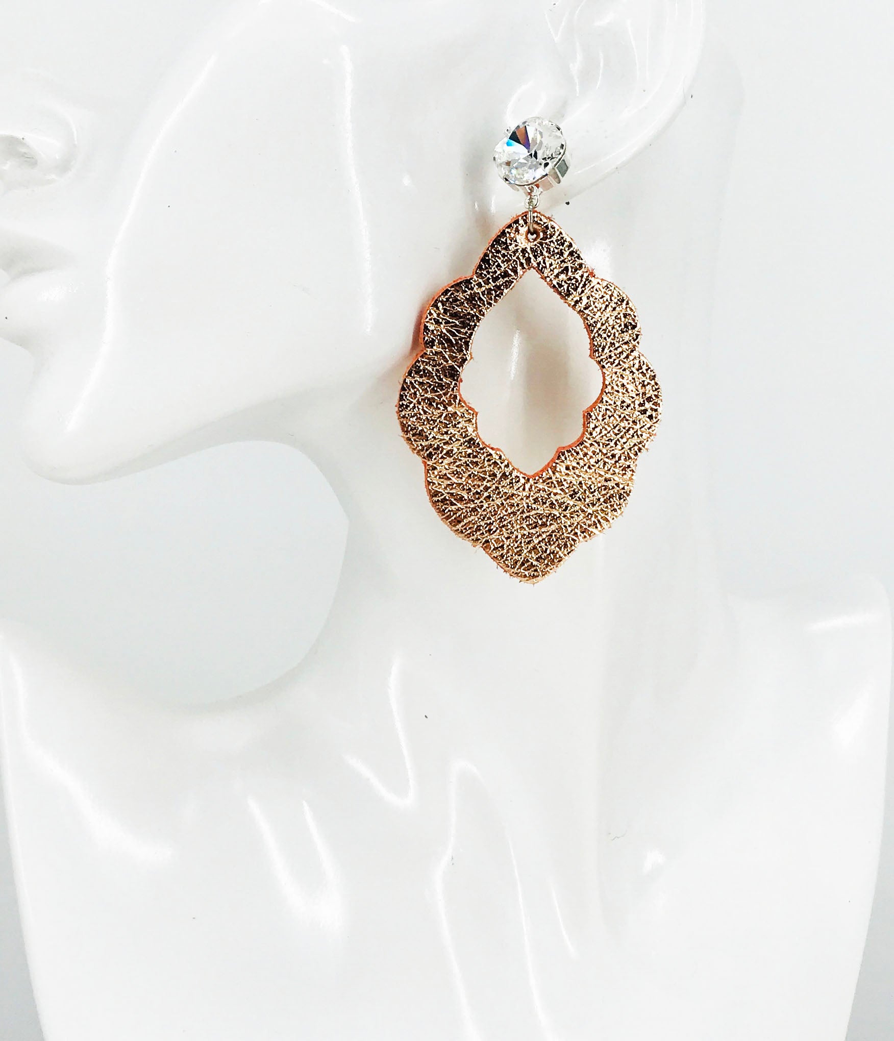 Crystal and Rose Gold Leather Earrings - E19-3767