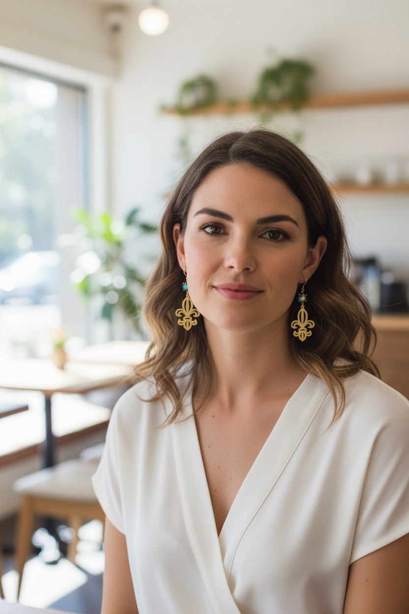 Crystal & Fleur De Lis Pendant Earrings - E19-4610