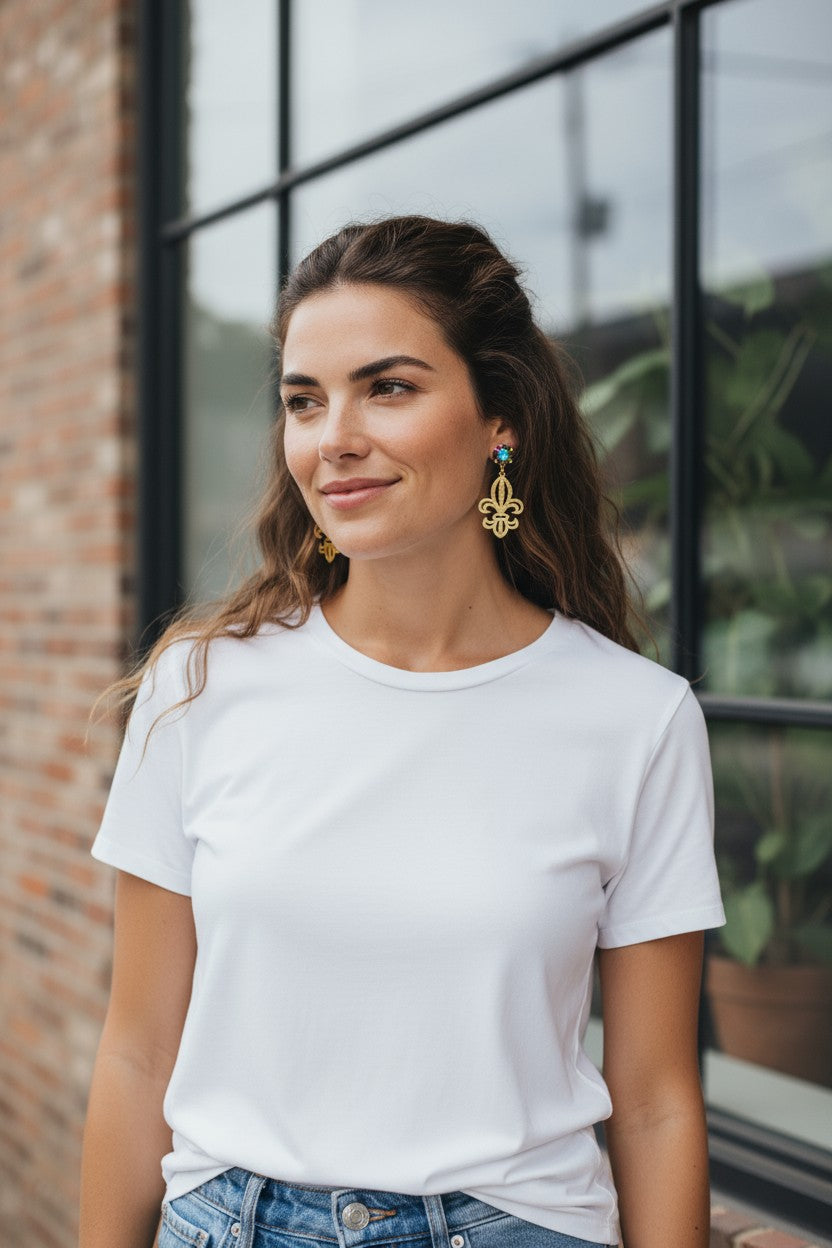 Crystal & Fleur De Lis Pendant Earrings - E19-4612