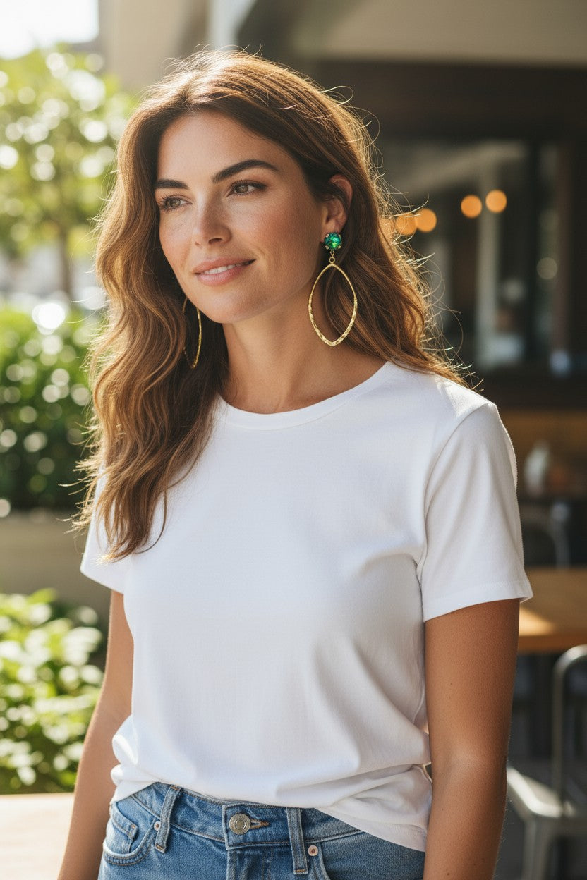 Crystal Vitrail Rivoli Genuine Crystal and Gold Tone Hammered Marquise Pendant Stud Earrings.