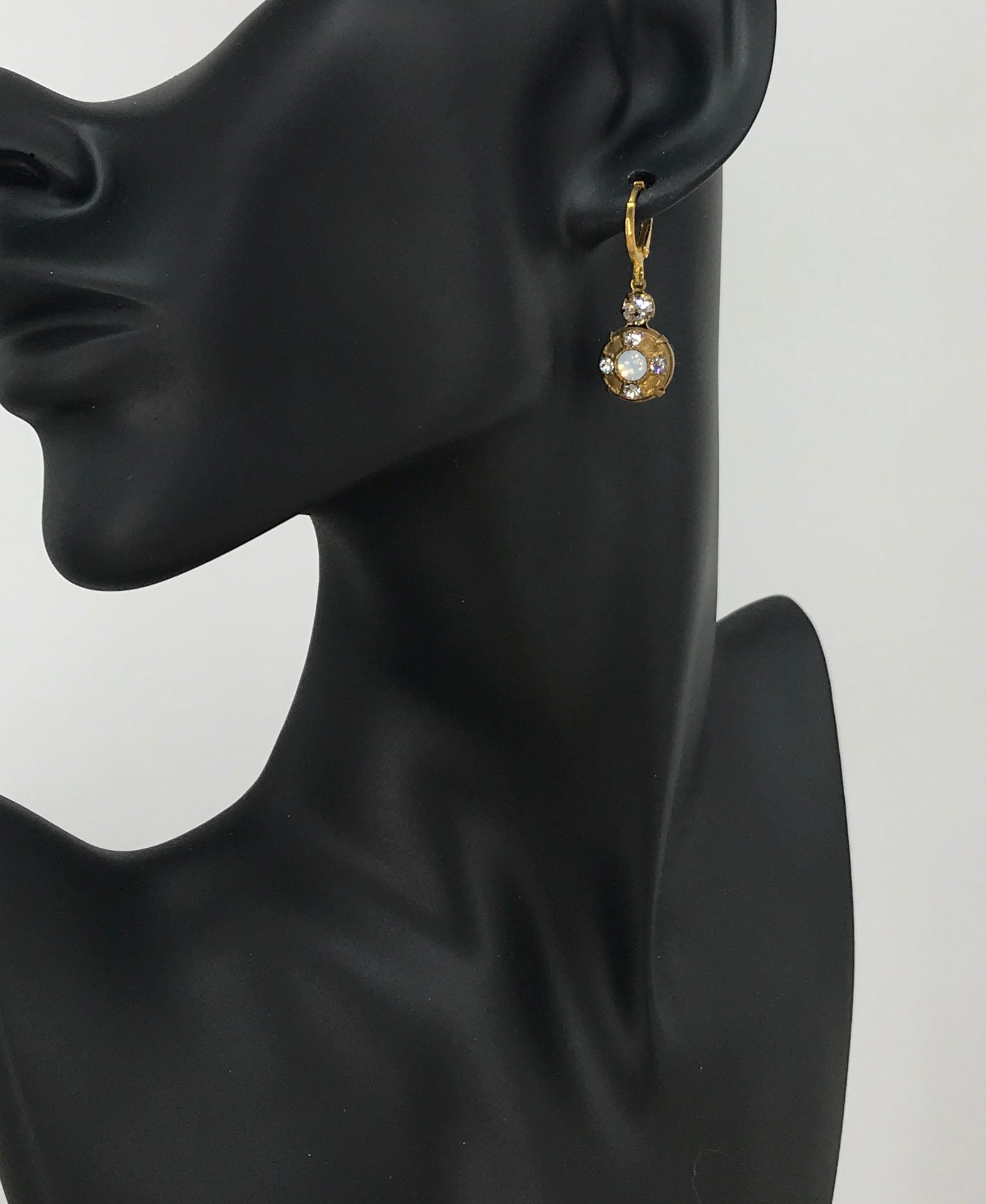 Genuine Crystal Pendant Earrings on Gold Tone Stainless Steel Lever Backs.