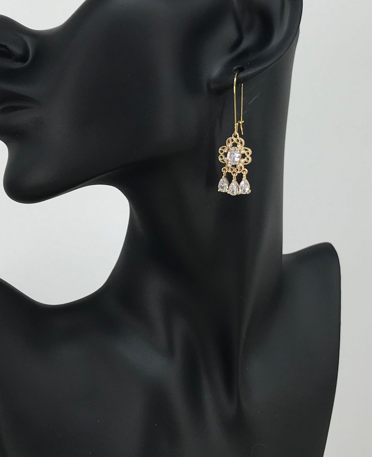 Swarovski Crystal Pendant Earrings on Gold Tone Stainless Steel Kidney Ear Wires..