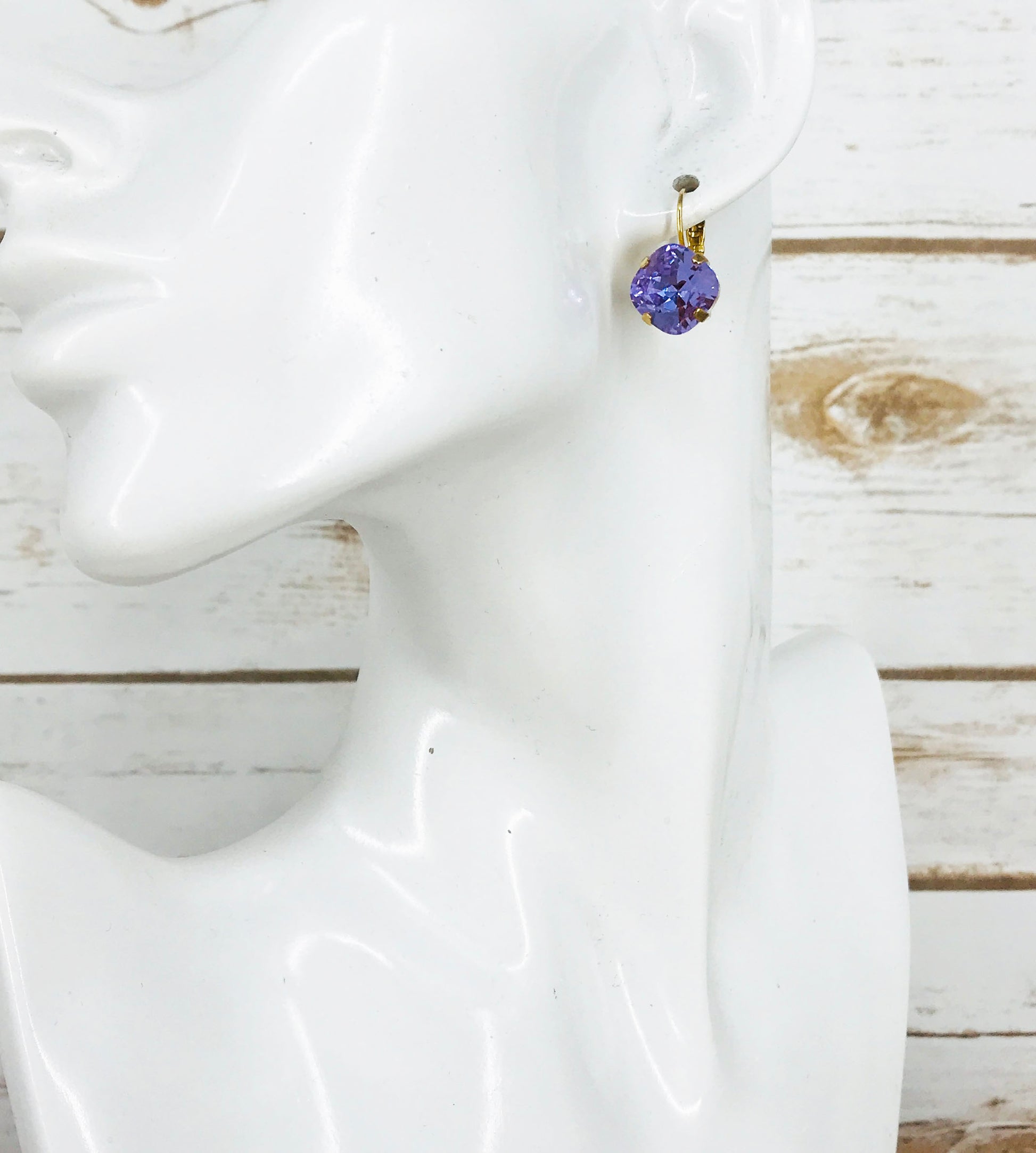 Cushion Cut Genuine Crystal Earrings in a Gold Tone 4 Prong Lever Back Setting.
