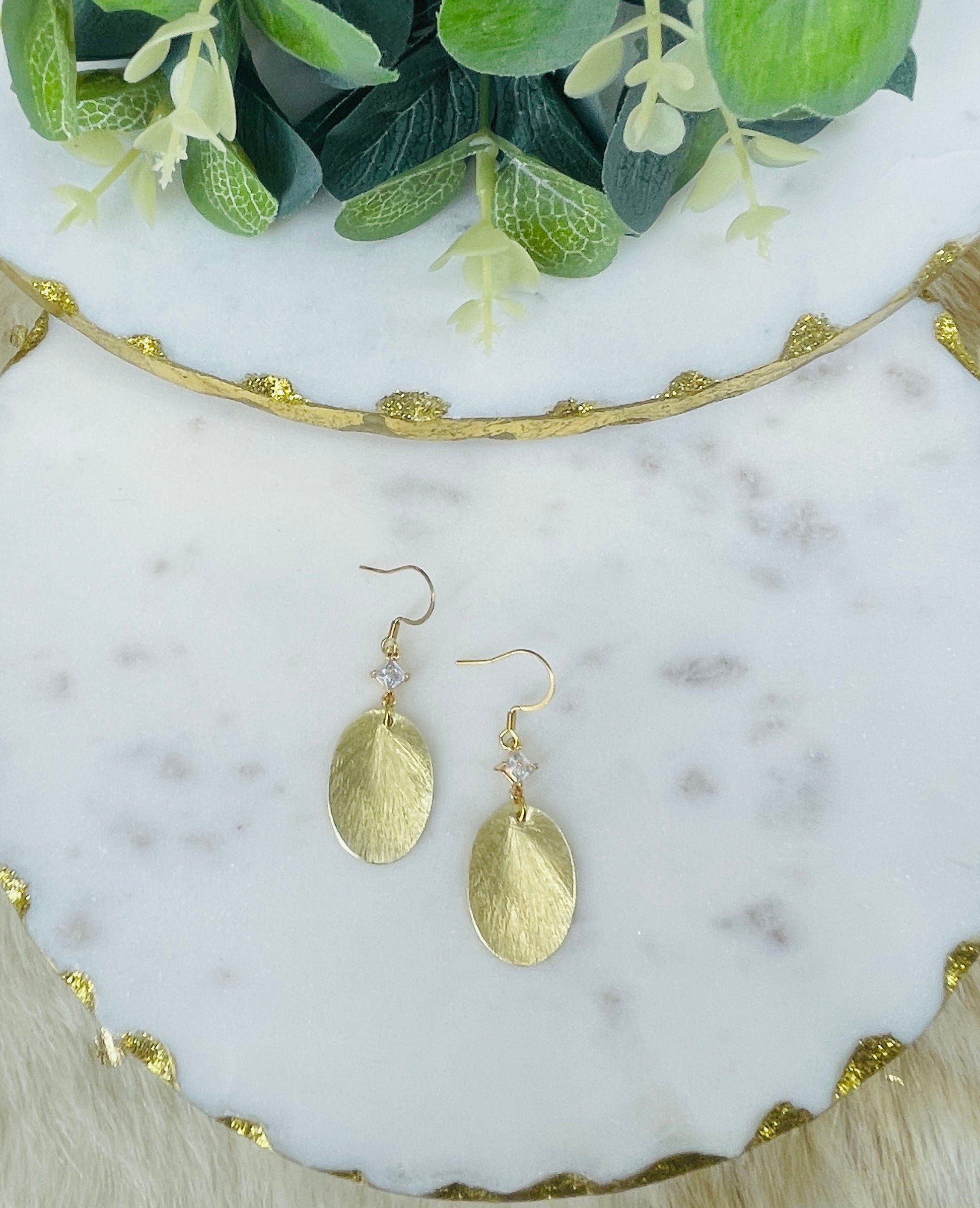 CZ & Brushed Gold Pendant Earrings