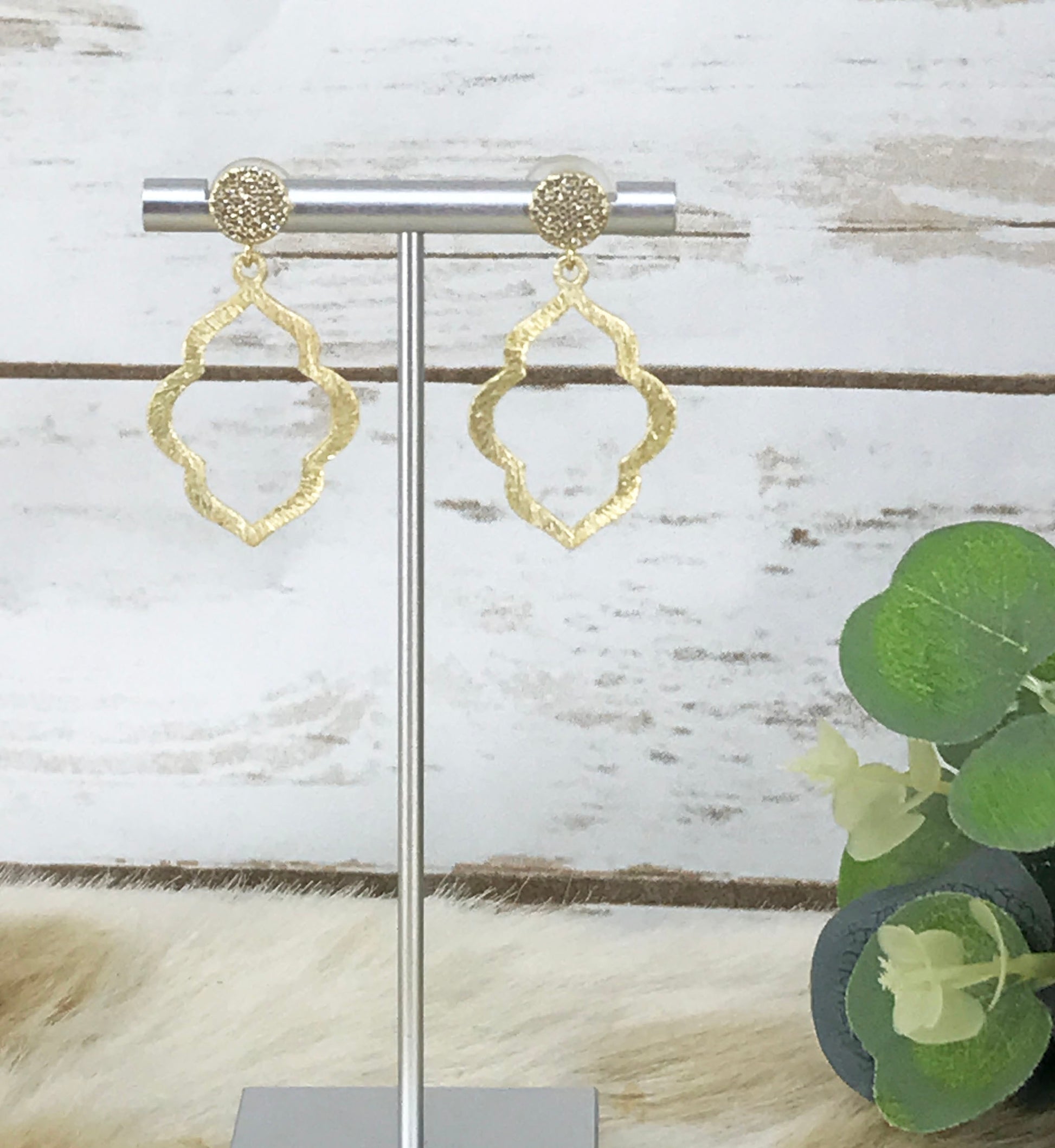 CZ Pave Stud & Brushed Gold Pendant Earrings - E19-4695