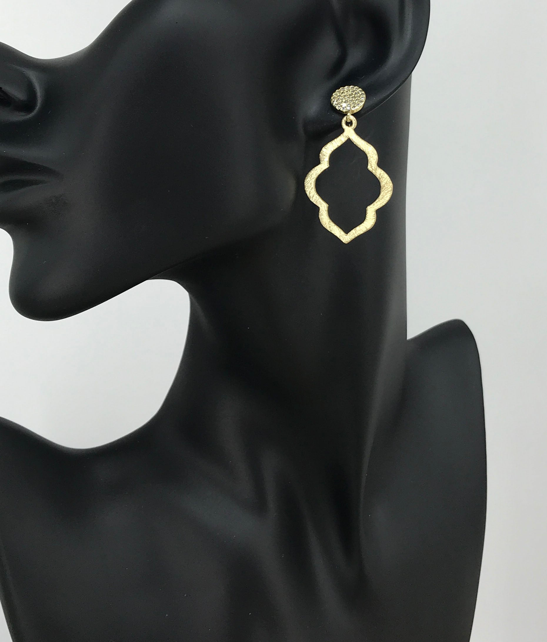 CZ Pave Stud & Brushed Gold Marquise Pendant Earrings.