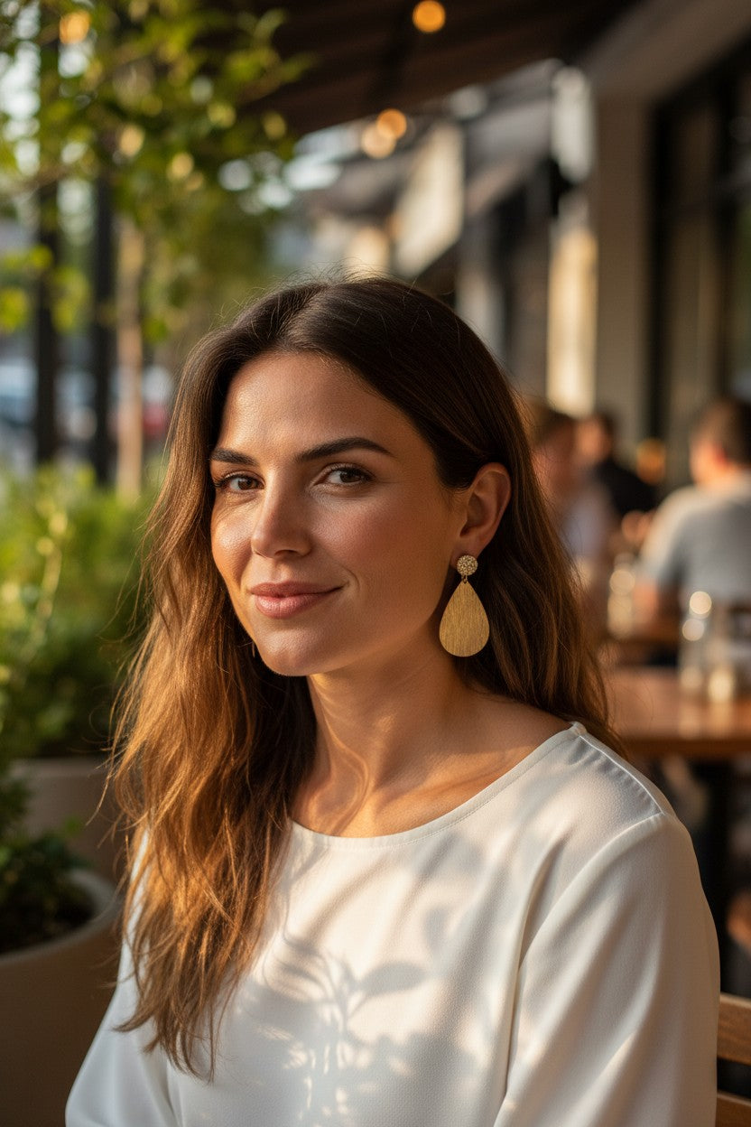 CZ Pave Stud & Brushed Gold Teardrop Pendant Earrings.