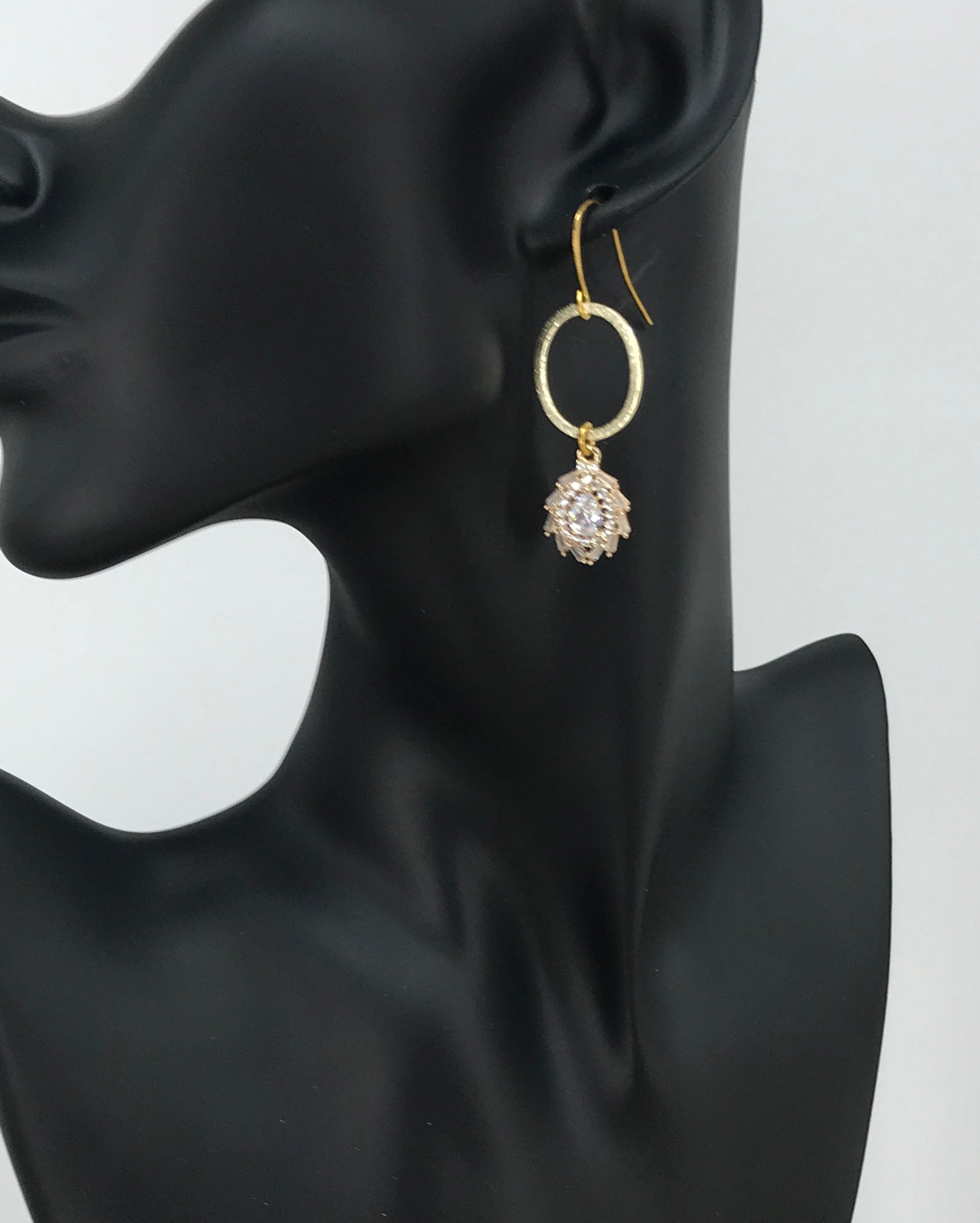 CZ Pendant & Brushed Gold Pendant Earrings.