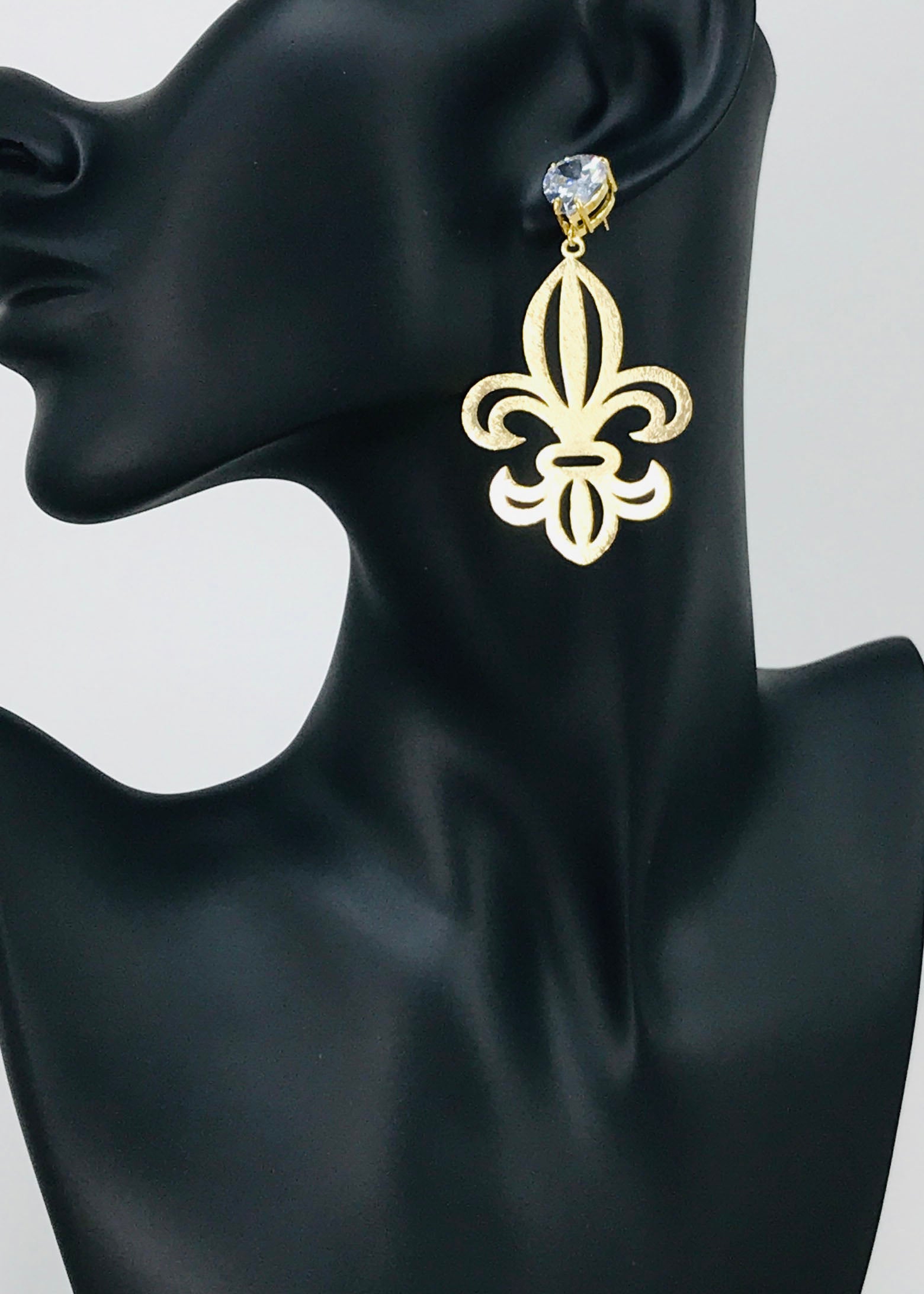 CZ Stud & Fleur De Lis Pendant Earrings - E19-4748
