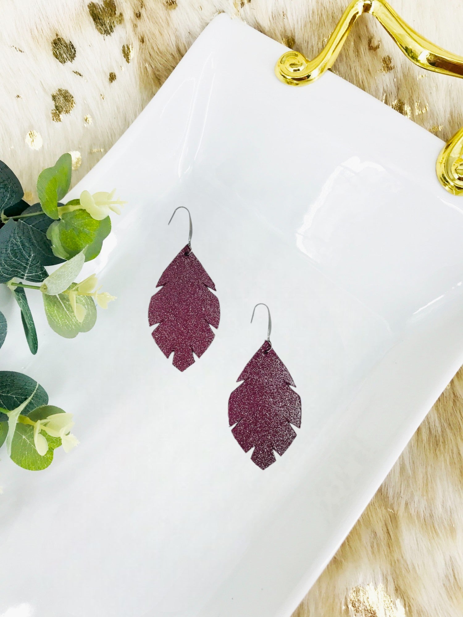 Deep Raspberry Dazzle Collection Leather Earrings with Stainless Steel Findings and Ear Wires.