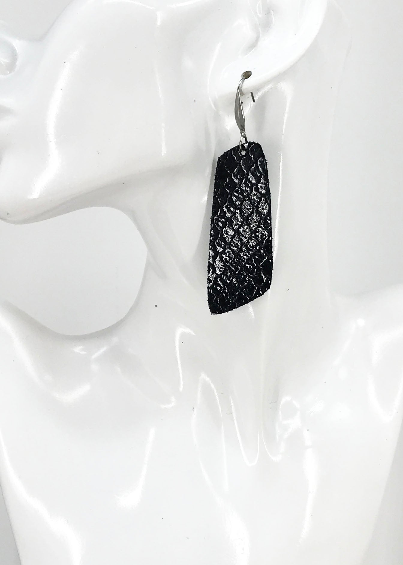 Fish Net Pattern Black Leather Earrings with Stainless Steel Findings and Ear Wires.