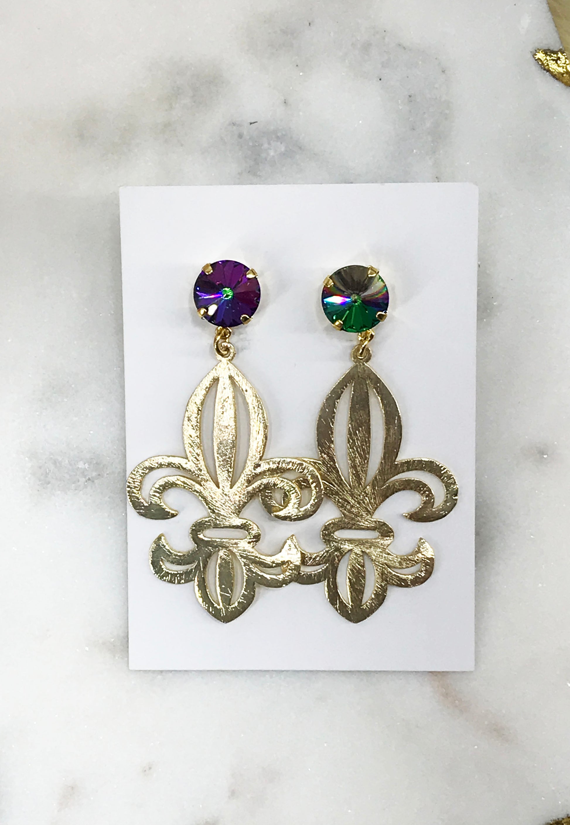 Genuine Crystal & Fleur De Lis Pendant Stud Earrings - E19-4746