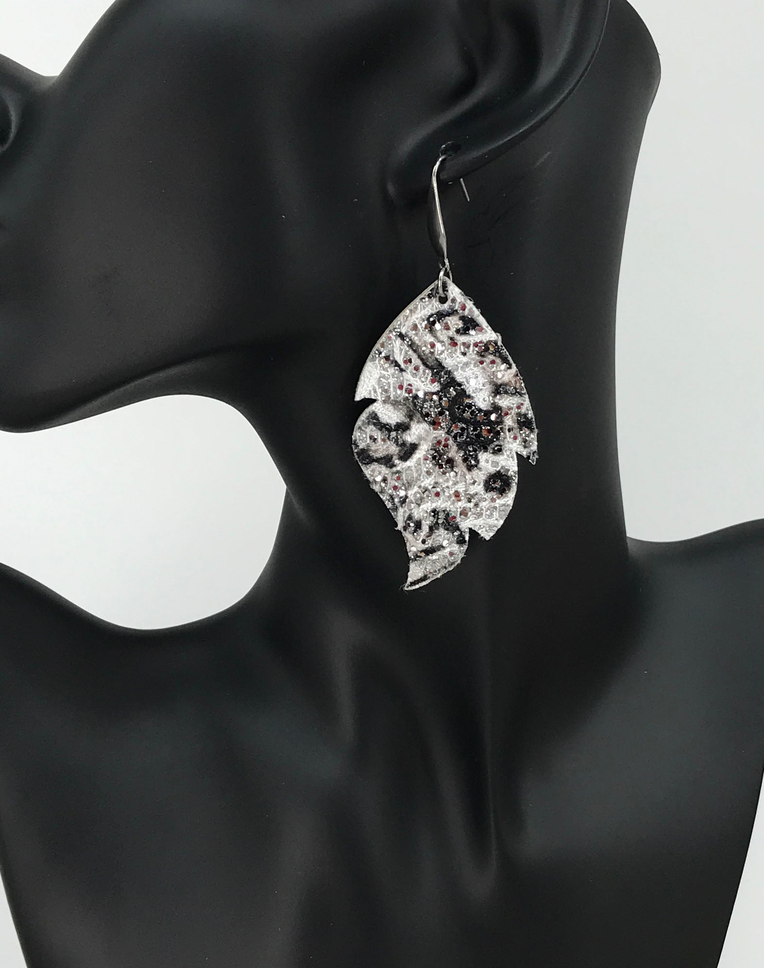 Glitter in the Wild Leopard Leather Earrings with Stainless Steel Findings and Ear Wires.