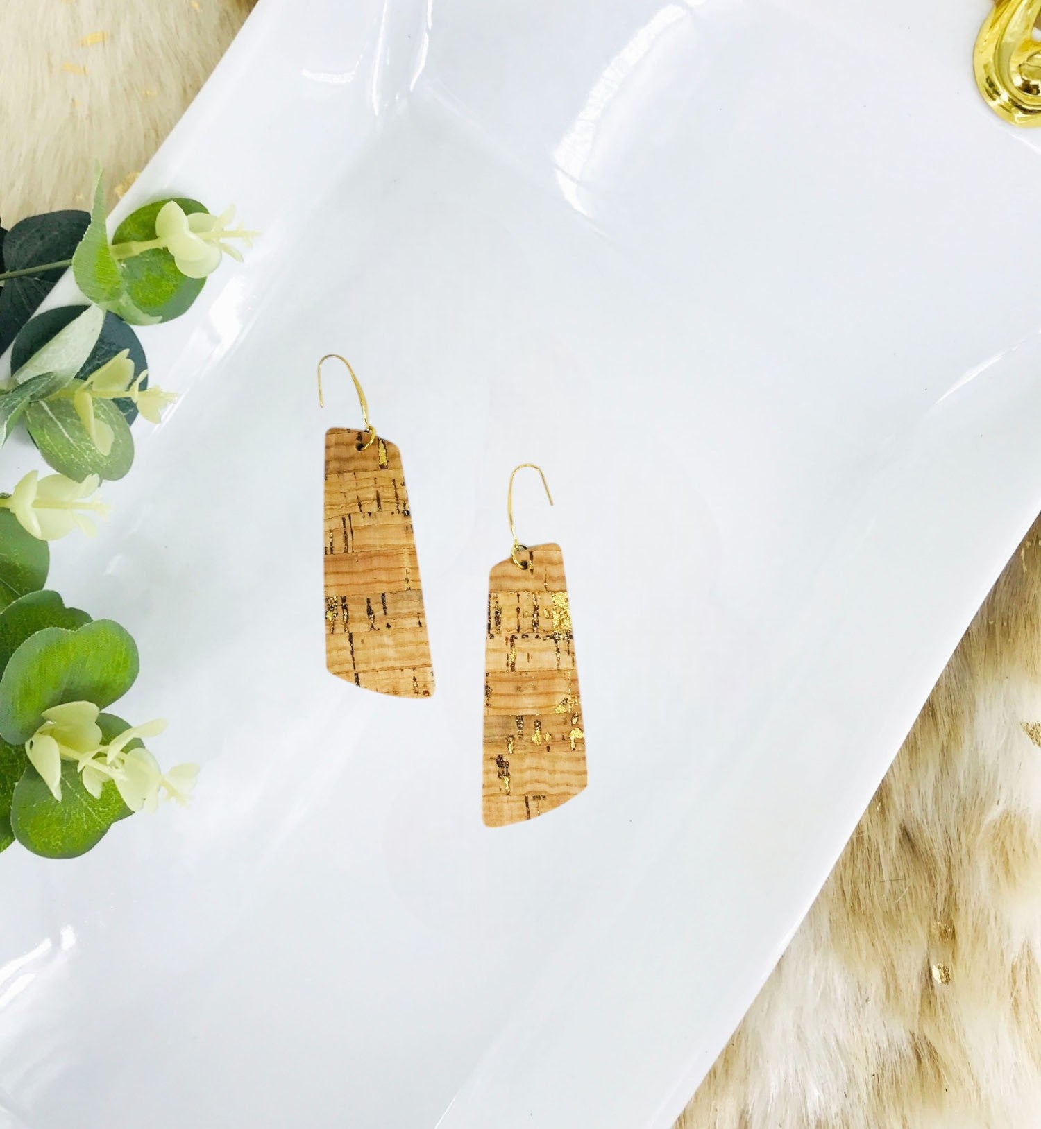 Gold Metallic Accent Cork on Leather Earrings with Gold Tone Stainless Steel Findings and Ear Wires.