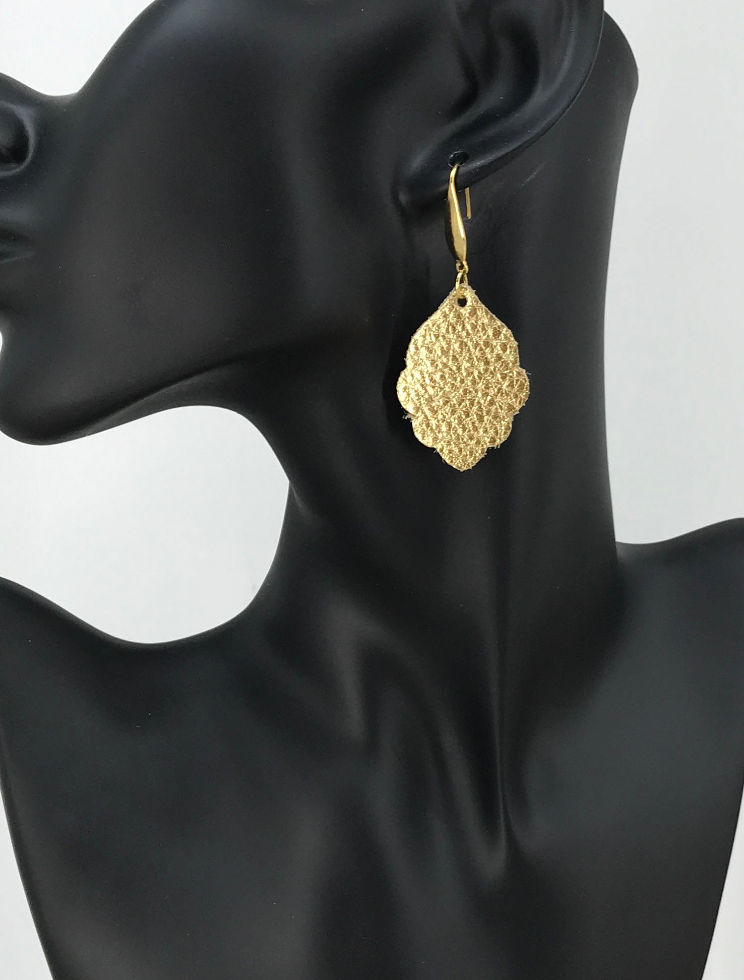 Gold Pebbled Genuine Leather Earrings with Stainless Steel Findings and Ear Wires.