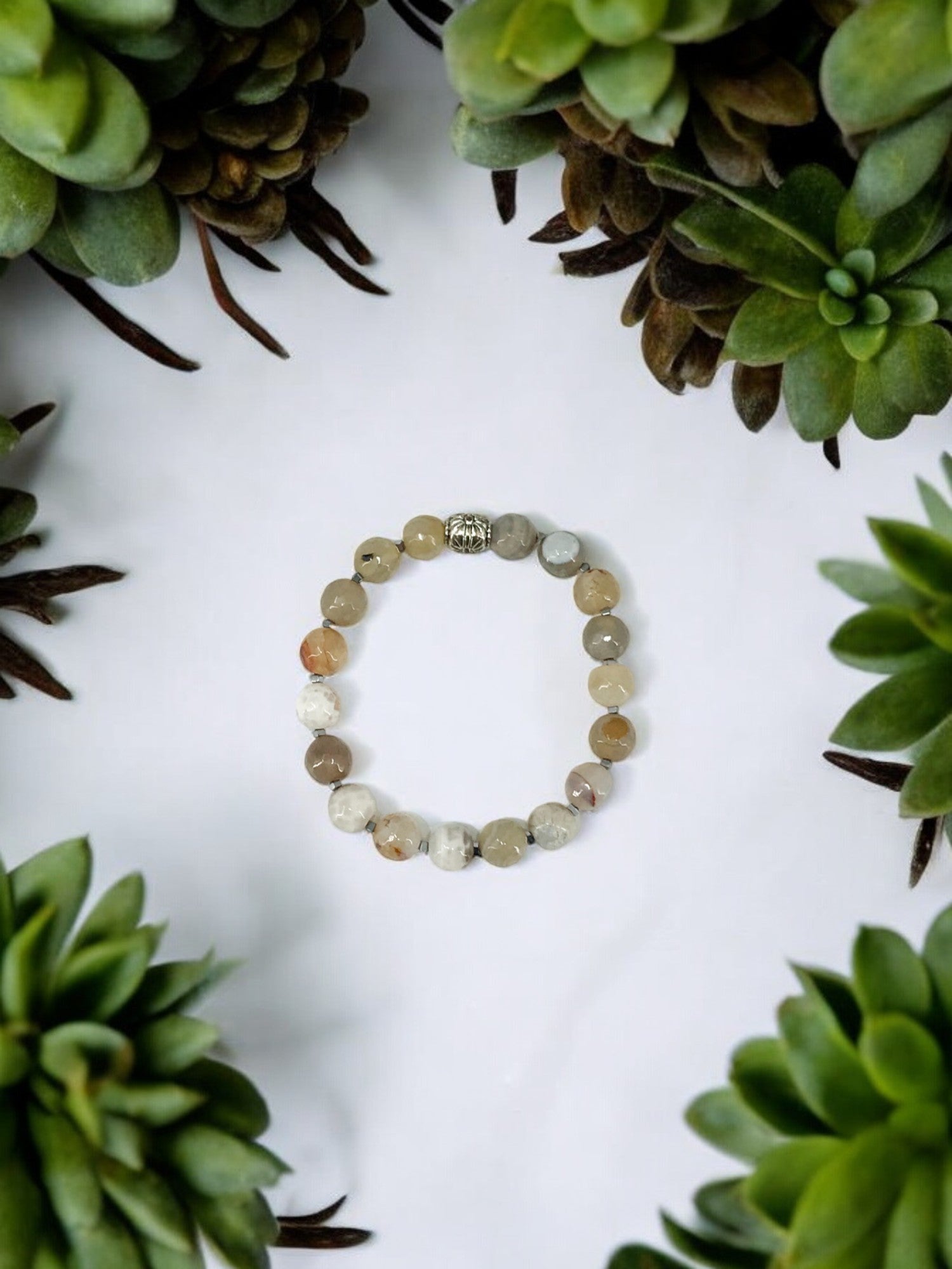 Gray Agate Stretchy Bracelet - B188