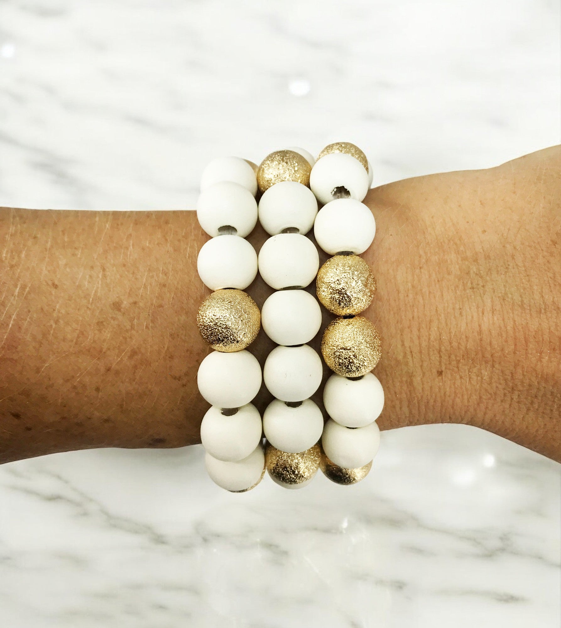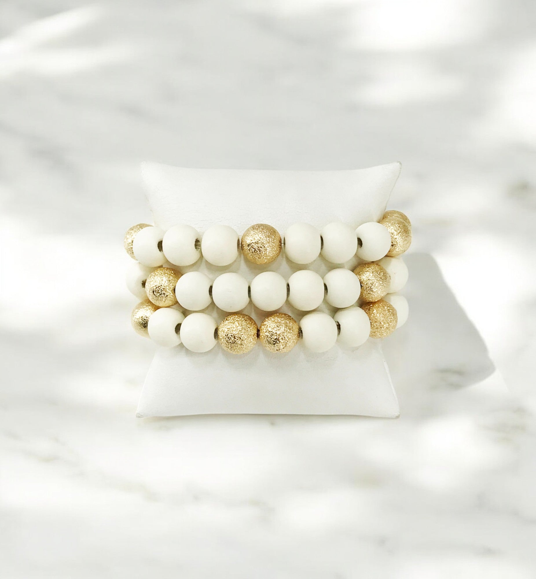 Ivory Isabelle Bracelet Stack Consisting of 3 Separate Stretchy Bracelets.