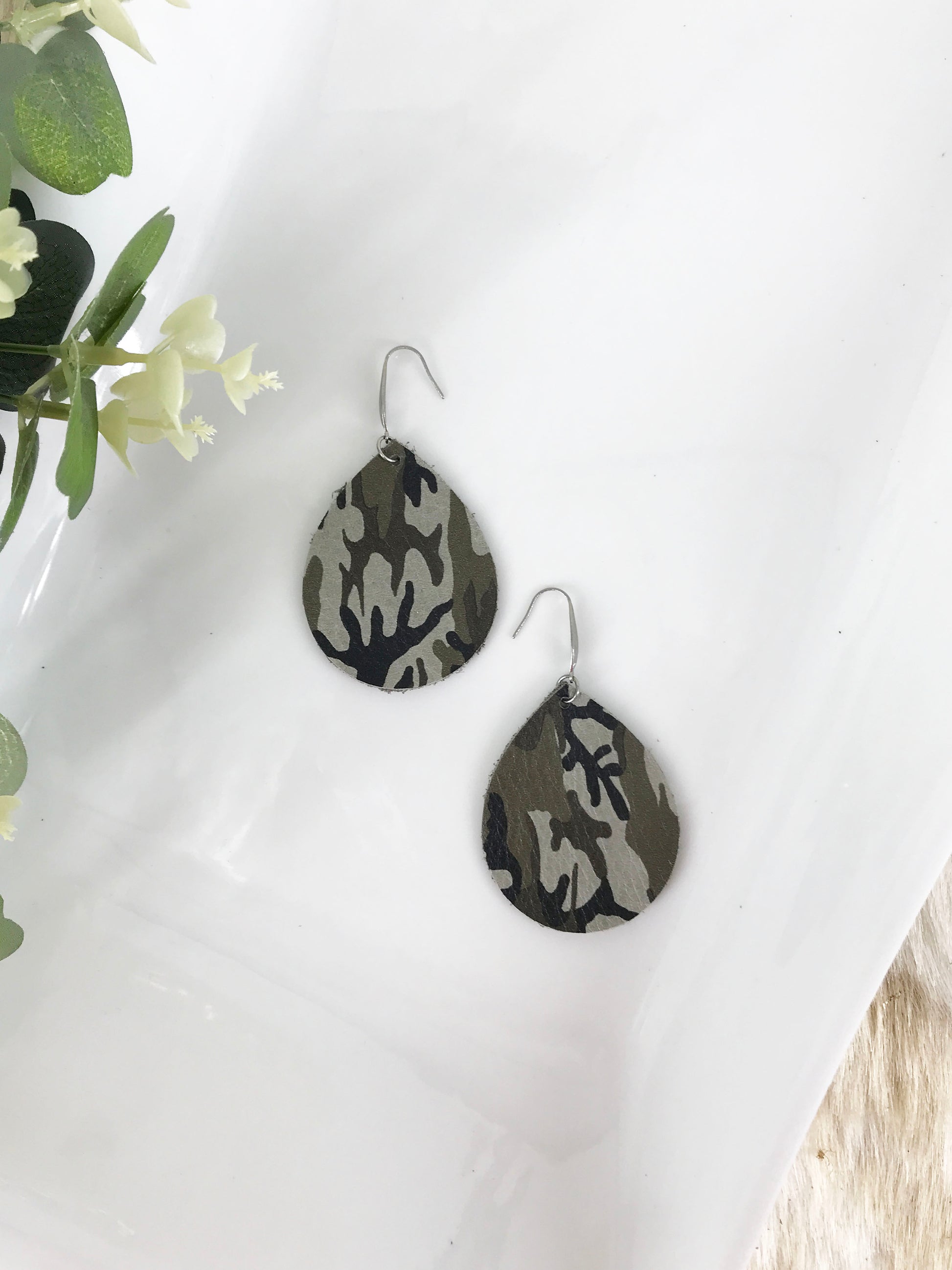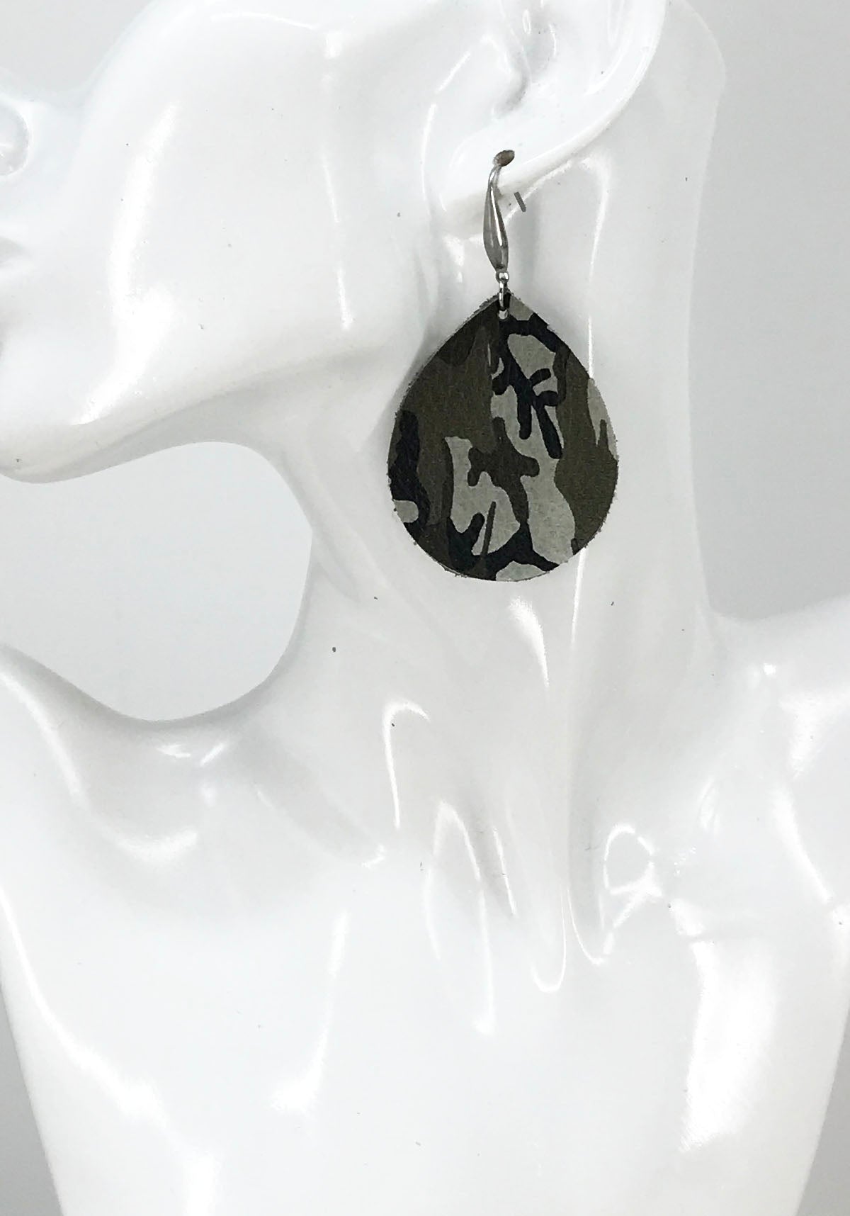 Jungle Gray Mini Camo Pattern Leather Earrings - E19-047