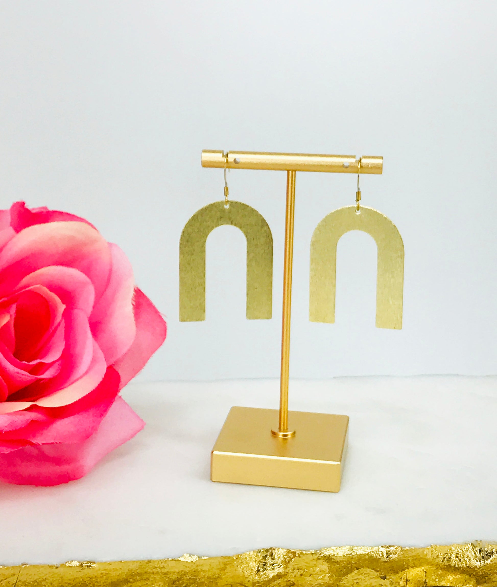 Large Brushed Gold Horseshoe Pendant Earrings - E19-4683