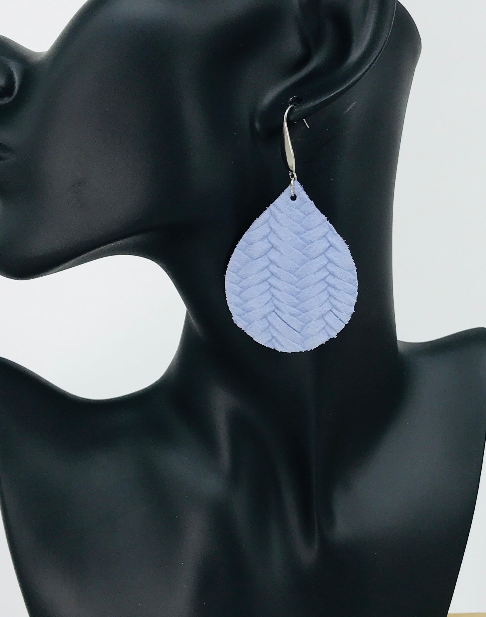 Lavender Haze Braided Fishtail Leather Earrings with Stainless Steel Findings and Ear Wires.