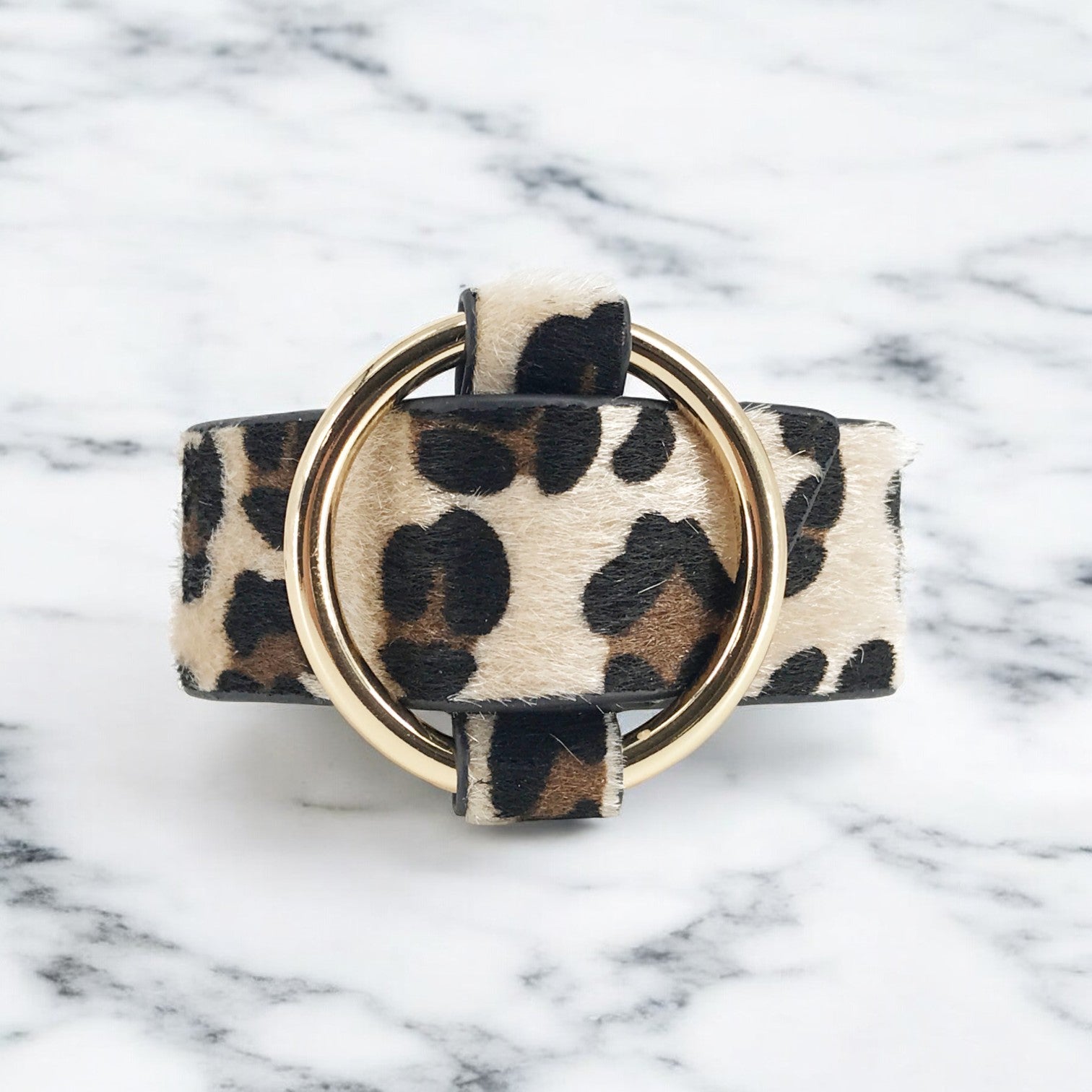 9.5" Faux Hair On Leopard cuff bracelet featuring a buckle style Closure.