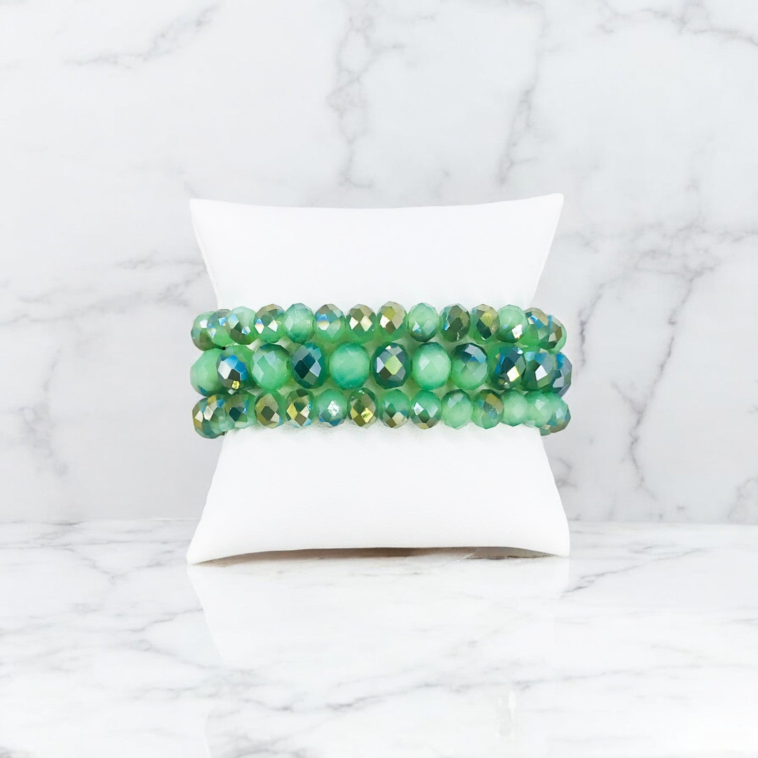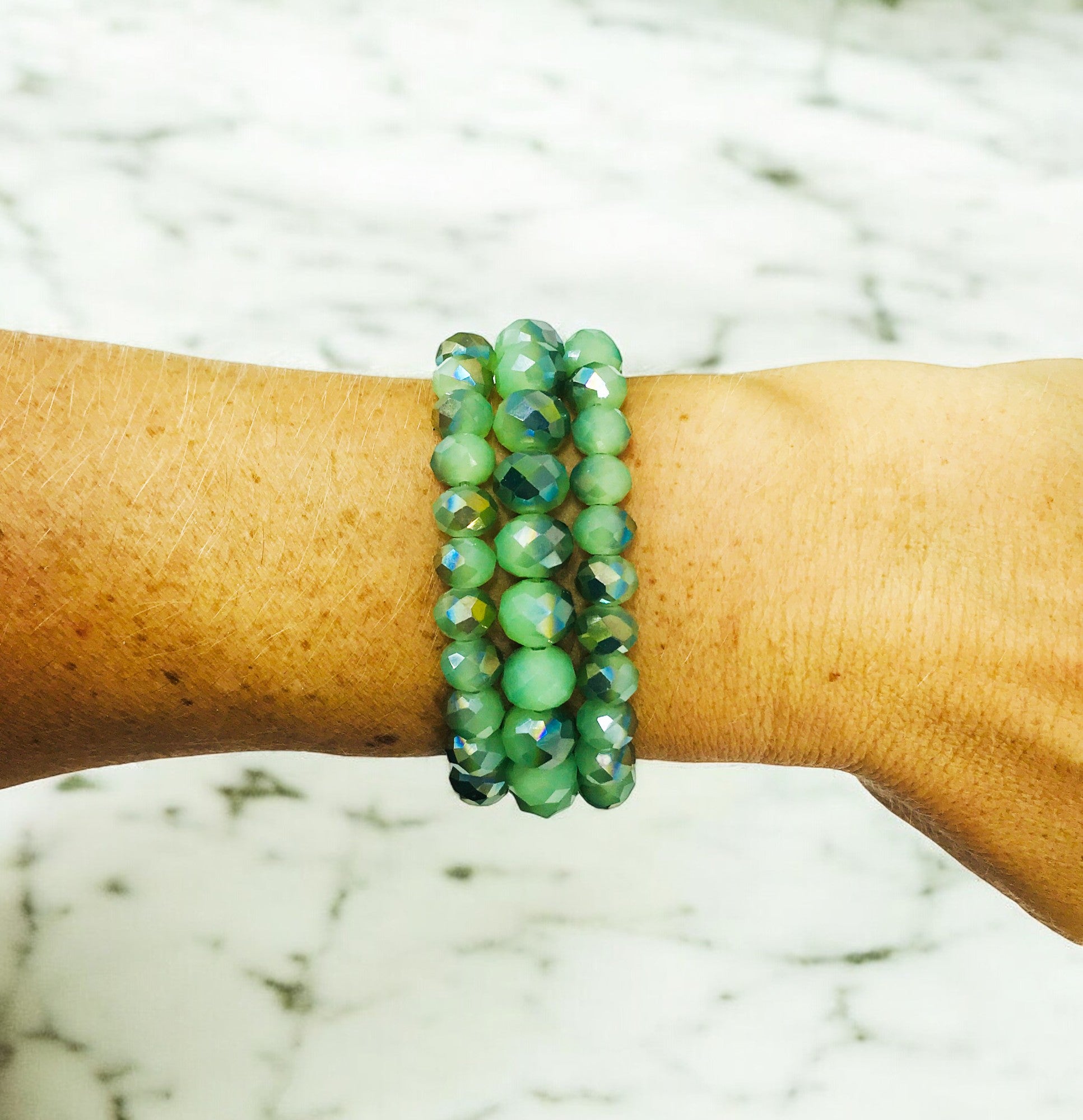 Green Three Strand Connected Stretchy Bracelet.