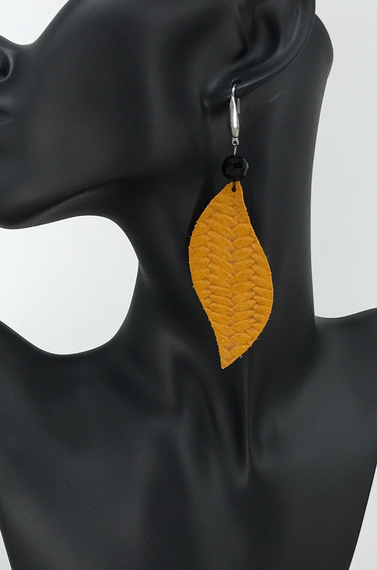 Mustard Braided Fishtail Leather Earrings with Stainless Steel Findings and Ear Wires.
