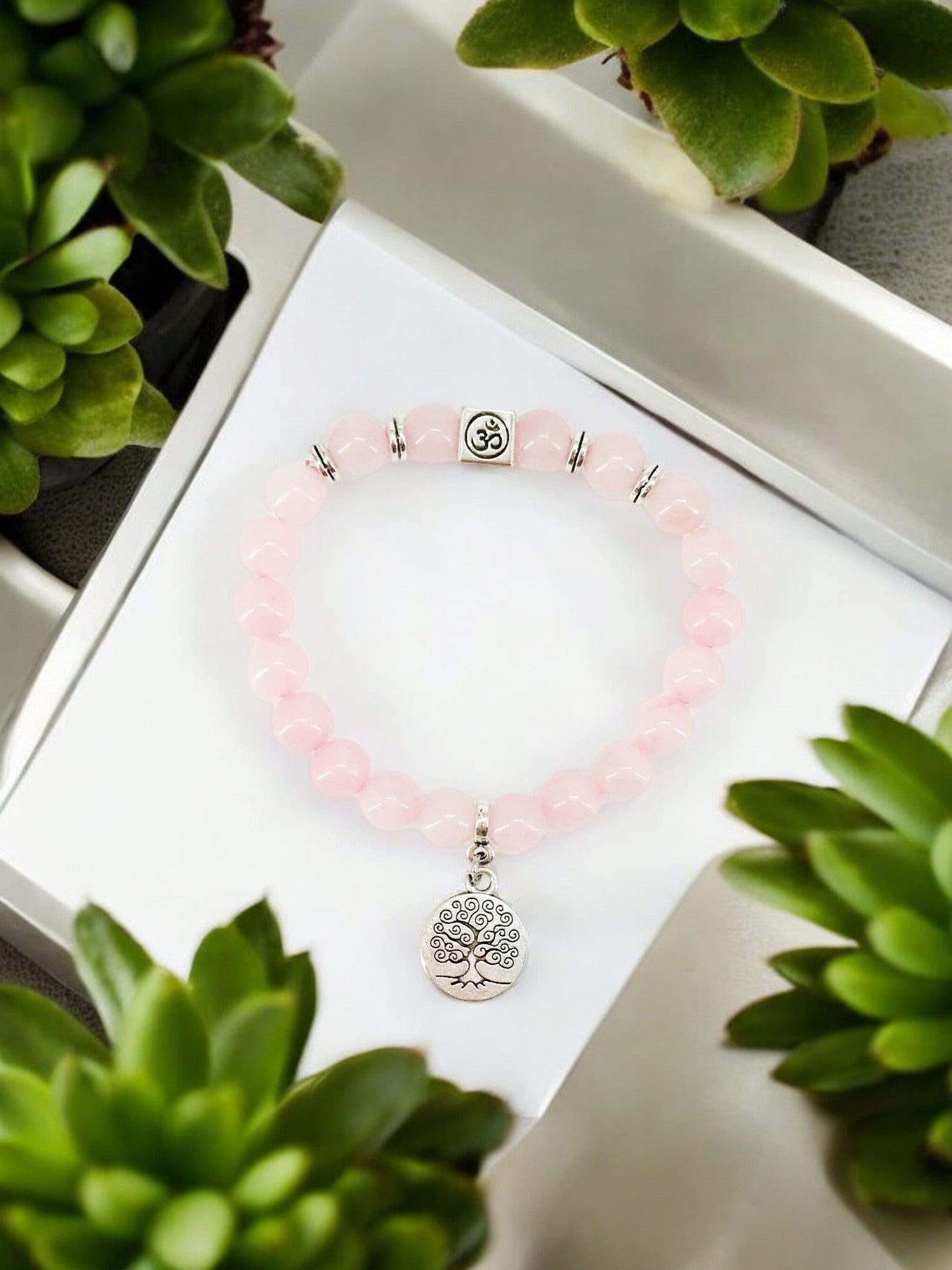 8" Natural Gemstone Bead Stretchy Bracelets made of 8mm Natural Gemstone Beads with a Tree of Life Charm.