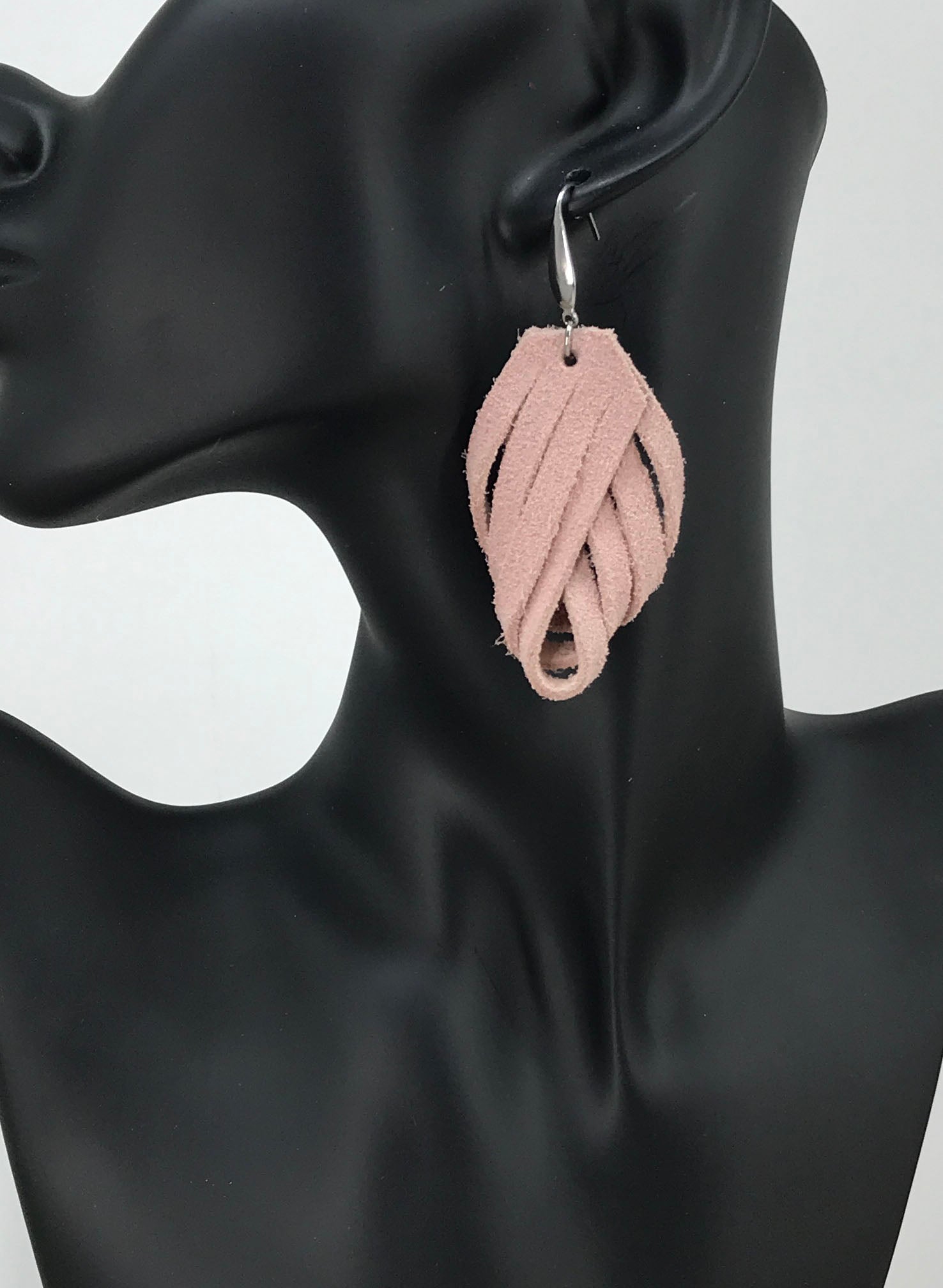 Vintage Pink Blush Suede Leather Earrings with Stainless Steel Findings and Ear Wires.