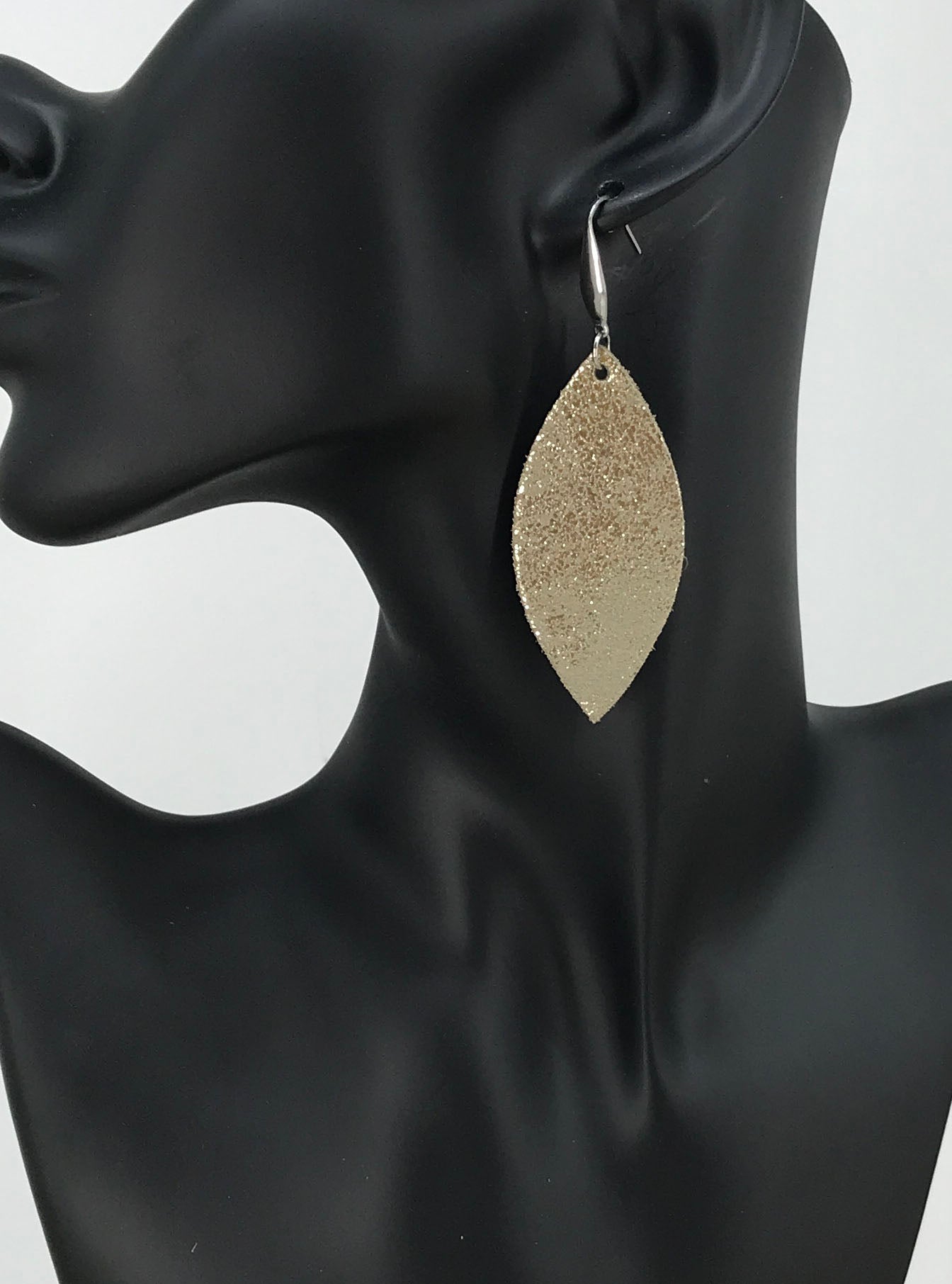 Platinum Crackle Goat Leather Earrings with Stainless Steel Findings and Ear Wires.