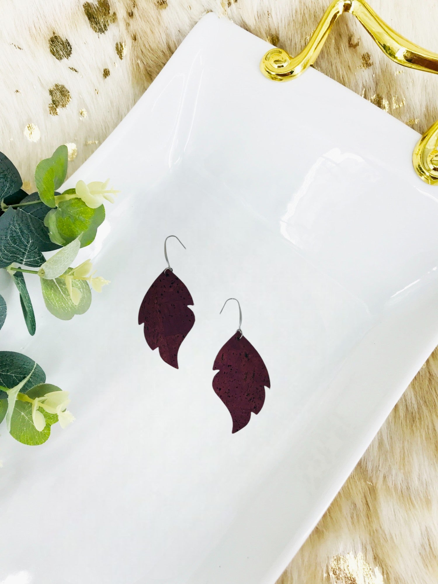 Purple Portuguese Cork Earrings with a Purple Fine Glitter Backing for Firmness and Silver Tone Stainless Steel Findings and Ear Wires.