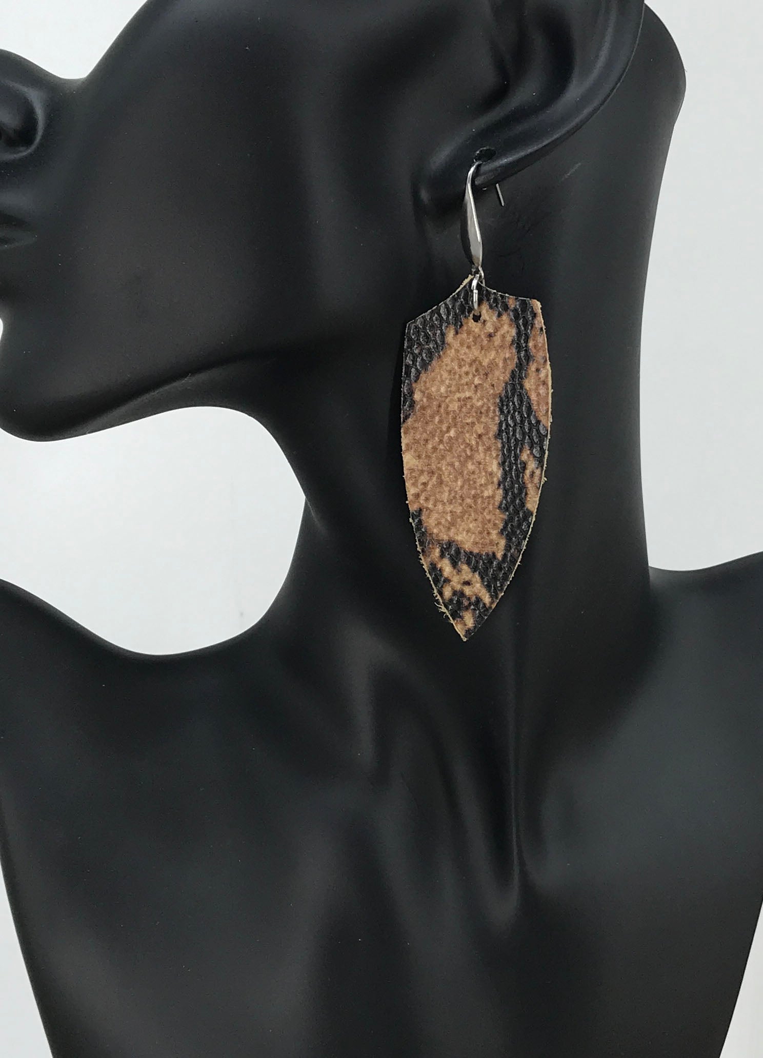 Latte Python Snake Leather Earrings with Stainless Steel Findings and Ear Wires.