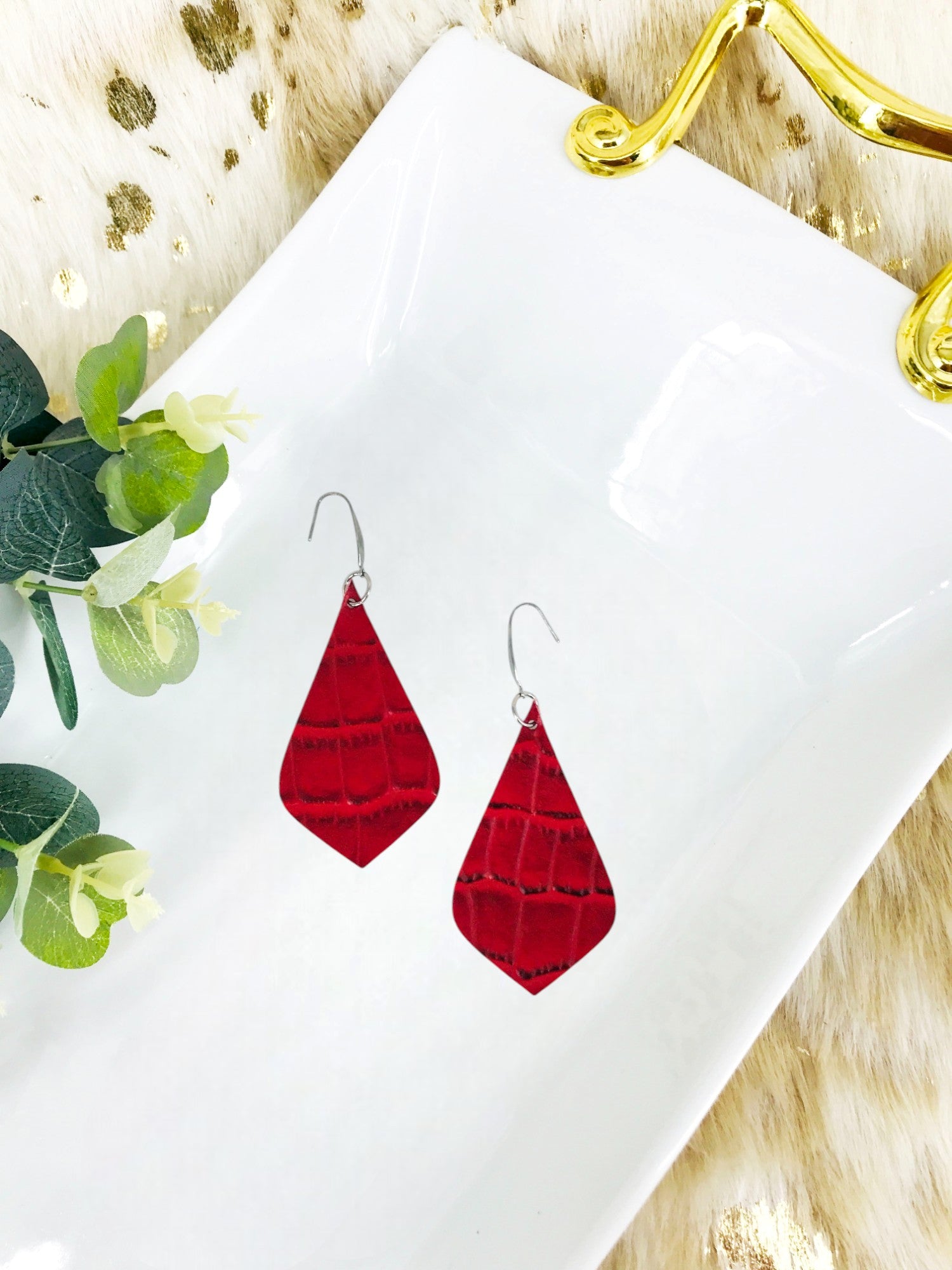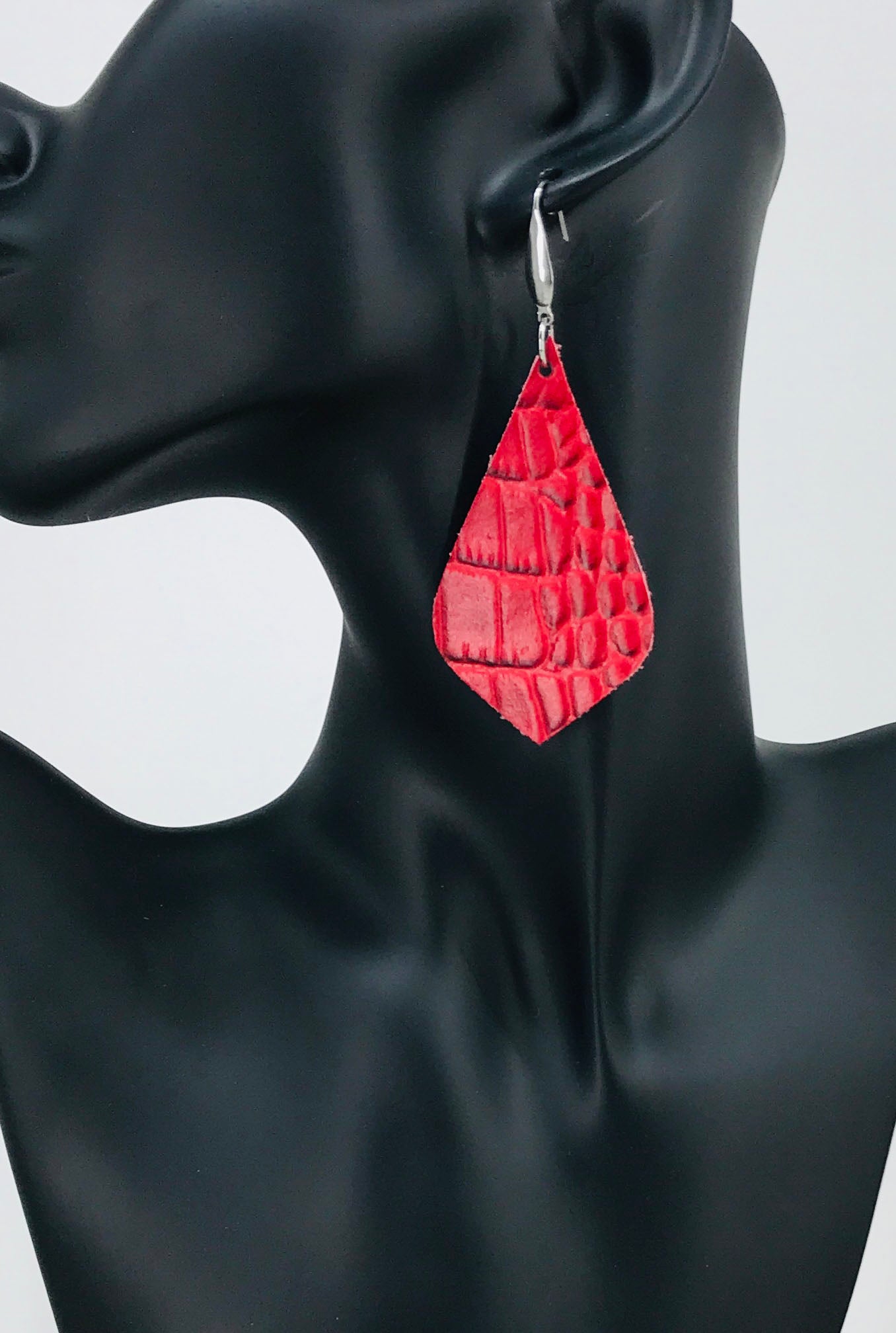 Genuine Red Alligator Leather Earrings with Stainless Steel Findings and Ear Wires.